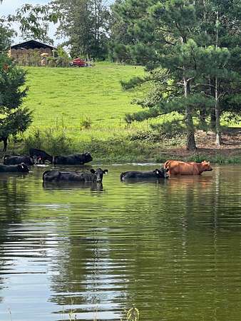 - 87.4 acres total, with 68 acres fenced and cross-fenced--ideal for horses, goats, sheep, cattle, or any livestock. The majority of pastures have gates to other pastures for perfect rotational grazing. Don't forget the large pond stocked for fishing (with cows shown taking a swim in the summer) and an additional small pond for livestock cooling off.