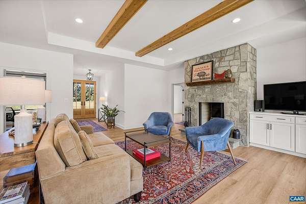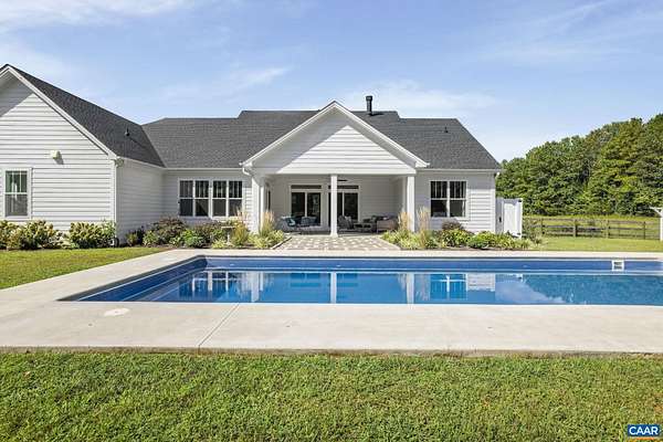 Set among the rolling horse farms/pastures and estates of Scottsville, this 10-acre property offers privacy, thoughtful design, and everyday comfort. Enjoy the convenience of this custom-built one level home, with details that balance craftsmanship and style: a wood-burning fireplace with grey fieldstone masonry, covered porches and ceramic tile baths including a zero-entry shower with frameless glass enclosure. The kitchen is a standout with upgraded cabinetry, granite countertops, quartz island, tile backsplash, butler’s pantry, and GE appliances. The primary suite features a walk-in closet with granite island. An expansive mudroom with built-in cubbies adds function, while full spray-foam insulation and an energy recovery ventilation system provide efficiency. Outside, the fenced backyard is a private retreat with extensive landscaping, a heated in ground pool and enclosed hot/cold outdoor shower. This home is minutes away from historical Scottsville, multiple picturesque wineries and within one mile of the James River where you can kayak, fish and enjoy other water activities. These 10 acres with ample fertile soil is the ideal location to start a hobby farm for pleasure or farm to table lifestyle.