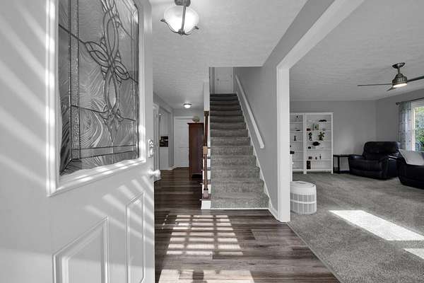 Remodeled in 2019, this 4 BR home offers close to 3000 sq ft and the perfect blend of rural tranquility and easy access to urban amenities. Quiet wooded setting and just a short drive from downtown Lancaster, the River Valley Mall, Kroger, Walmart, and Fairfield Medical Center. Situated north of downtown Lancaster, this area offers easy access to State Route 33 for commuting toward Columbus. Spacious white decorator kitchen cabinets with abundance of storage and long stretch of granite counters with updated backsplash with dining bar plus holiday size dining room area. . First floor flex room currently serves as office, but could be 4th BR/ in law suite, etc. Spacious great room and family room, first floor laundry w/storage. 2nd floor primary suite with recently updated walk in shower with decorator tile , dual vanity sinks and dual closets . First floor laundry, great room, family room for today's modern living . Huge 2nd floor bedrooms and abundance of storage and closets, Provides a quiet, suburban/rural mix perfect for those seeking a slower pace of life. Relax on your front porch or entertainment size deck. New heat pump compressor 2026, Amish Shed, fresh paint exterior and interior. New Septic aerator. Won't last !!