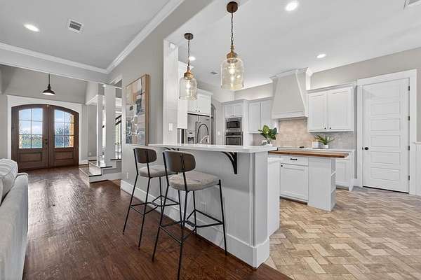 Refined luxury meets resort-style living in this exceptional custom estate located in highly sought-after High Point Lake Estates. Perfectly positioned on a premier 1.5-acre corner lot, this property offers expansive countryside views, privacy, & a thoughtfully curated layout designed for both everyday living & entertaining. Spanning over 4,500 sqft, the home features two primary suites & private ensuite baths for every bedroom. The main level is anchored by a grand living area showcasing a dramatic floor-to-ceiling stone fireplace with custom built ins, framed by plantation shutters & rich hand-scraped hardwood floors. A formal dining room & elegant sitting area create intentional gathering spaces, while a private study overlooking the pool offers a serene work-from-home retreat. The chef’s kitchen is both sophisticated and functional, featuring quartz countertops, a statement butcher block island, SS appliances, & a well-appointed butler’s pantry for seamless entertaining. The primary suite is a true sanctuary with a spa-inspired bath complete with a freestanding soaking tub, oversized walk-in shower, & designer finishes. Upstairs, a spacious game room is accompanied by three secondary bedrooms, each with its own ensuite bath, offering comfort & privacy throughout. Outdoors, the estate transforms into a private retreat. A heated resort-style pool and spa, cabana with outdoor kitchen, covered patio with fireplace, & an inground trampoline create a backyard experience designed for year-round enjoyment — all set against wide-open views and tranquil surroundings.