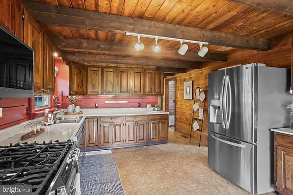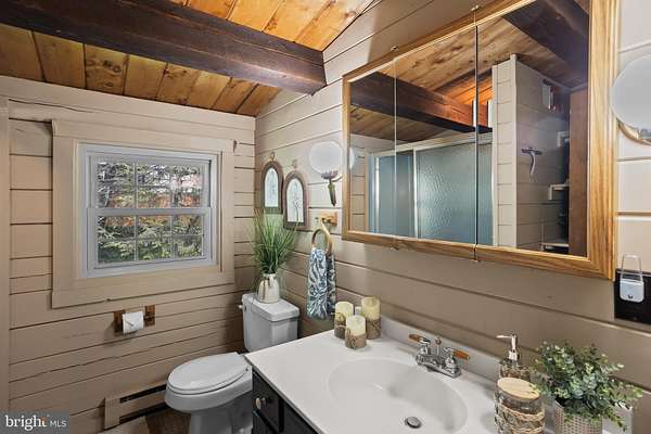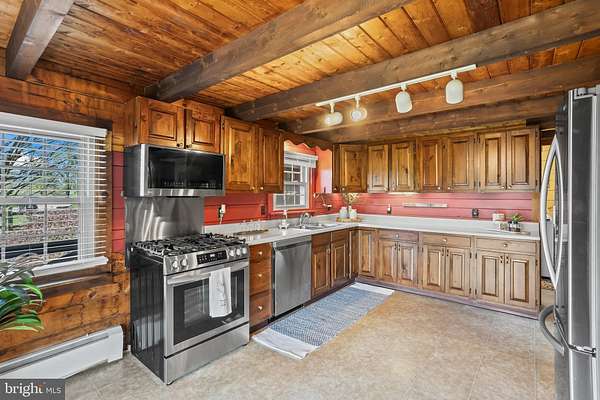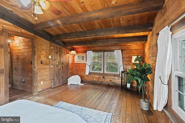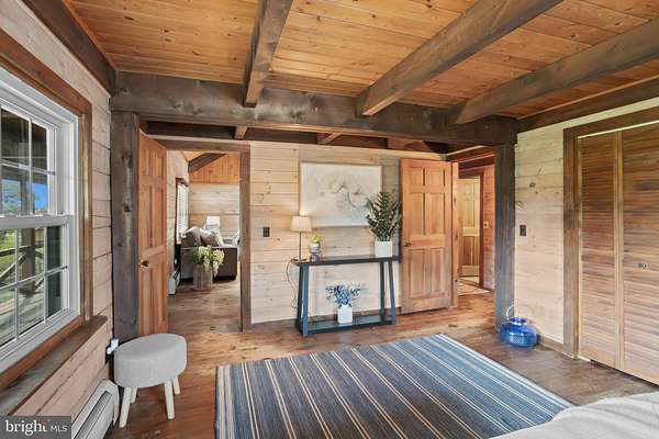 - Ceiling Fan(s), Combination Dining/Living, Eat-In Kitchen, Entry Level Bedroom, Exposed Beams, Recessed Lighting, Skylight(s), Stall Shower Bathroom, Tub Shower Bathroom, Water Treat System, Wood Floors