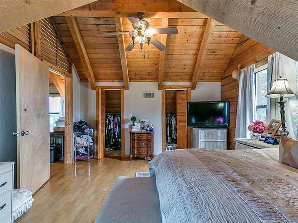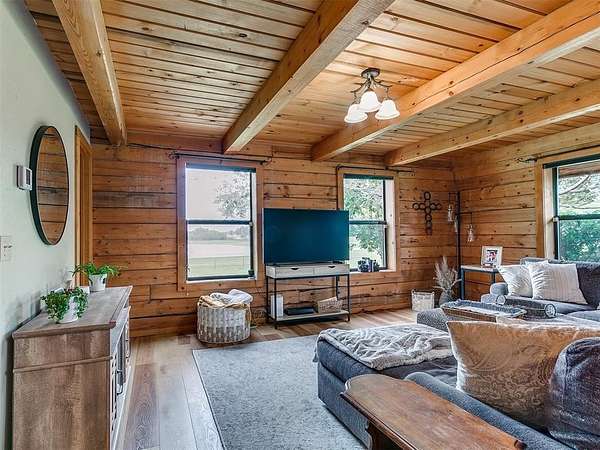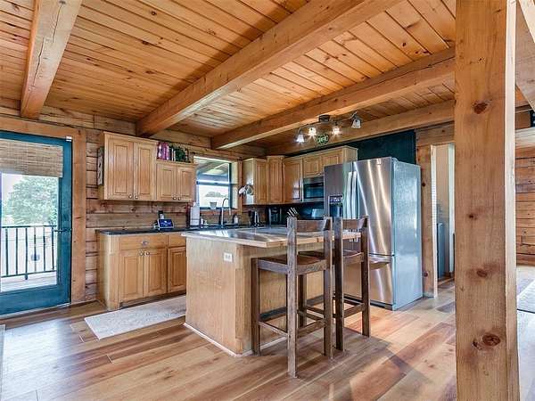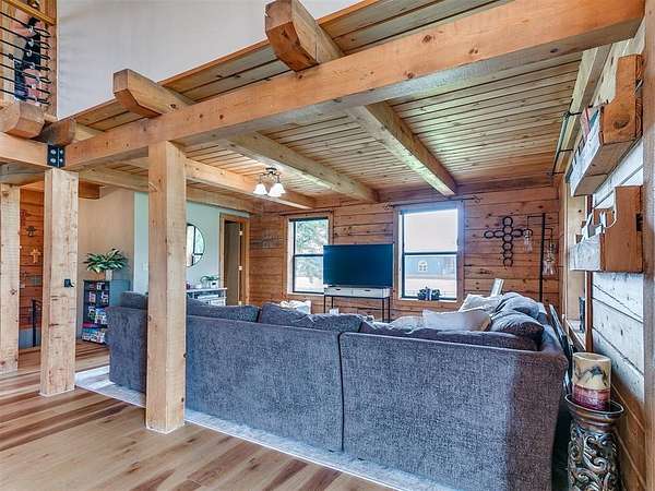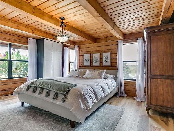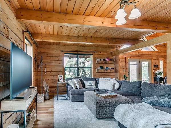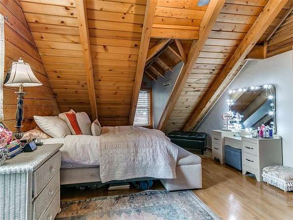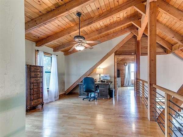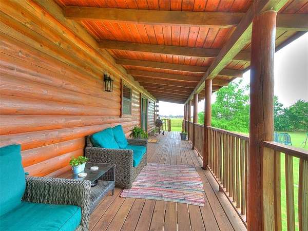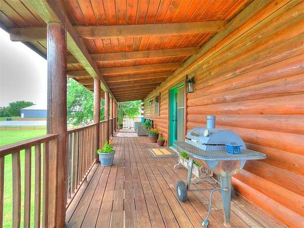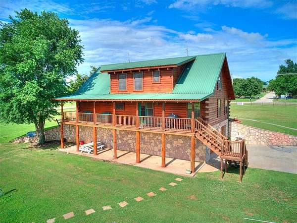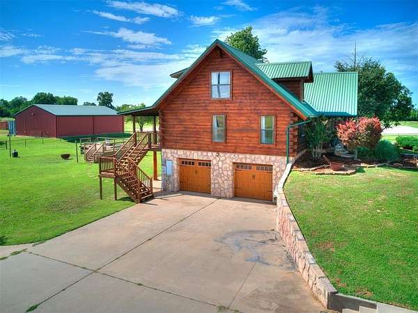 A Hidden Log Cabin Retreat right in Oklahoma City! Sitting on 2.4 fully fenced acres lies a home that feels like a world away--yet you're just minutes from top-rated schools, shopping, and major highways. This authentic log cabin is the kind of place you daydream about: rustic charm, modern comforts, and room to roam... right in the middle of town. As you turn down the drive, the handcrafted log exterior instantly slows your pace--welcoming you home to a place where sunsets are best watched from the deep back porch, and every day feels like a getaway. Step inside, and you're greeted by soaring ceilings and a loft that peeks out over the open living space below--perfect for cozy mornings and laughter-filled evenings. The heart of the home has newly updated stainless steel appliances and warm wood tones that echo the natural surroundings. The main level hosts the primary suite with its own private full bath, while two additional bedrooms and a full bath are tucked upstairs--ideal for guests, kids, or a quiet home office setup. Head down to the earth-sheltered basement where an extra 468sqft not included in square footage awaits with a versatile bonus room invites you to create: your private spa, craft room, epic storage room, or workout space. The laundry area is downstairs as well as direct access to the oversized 2-car garage, deep enough for extra storage or tandem parking for your adventure gear and comes with a storm shelter. Outside, the land speaks for itself--pipe and cable fencing encloses the property, offering a secure space for pets, hobbies, or maybe even a future garden or shop. Whether you're sipping coffee on the porch or stargazing in your own backyard, you'll feel like you've escaped to the country--without giving up city convenience. Zoned agricultural, this rare property is Peaceful. Completely Unexpected. This isn't just a home--it's a lifestyle. Come see for yourself the story waiting to be written here.