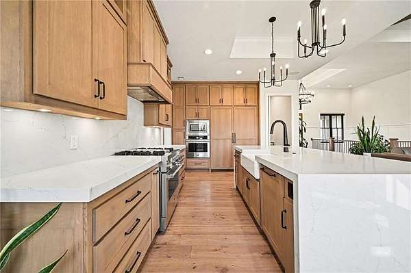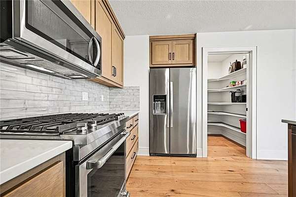 - Built-In Oven, Dishwasher, Disposal, Gas Range, Refrigerator, Stainless Steel Appliance(s)