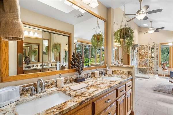 - Attic Storage, Blinds, Built-Ins, Cathedral Ceiling, Ceiling Fans, Eat-in-Kitchen, Granite Counters, Ice Maker Connection, Programmable Thermostat, Skylight, Walk-In Closets, Wet Bar