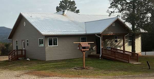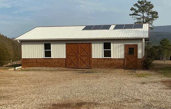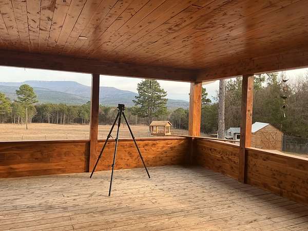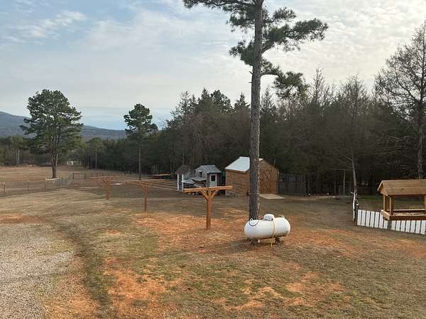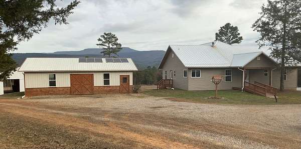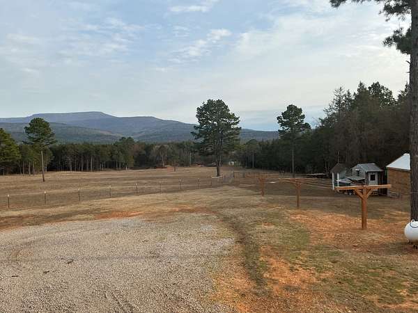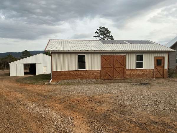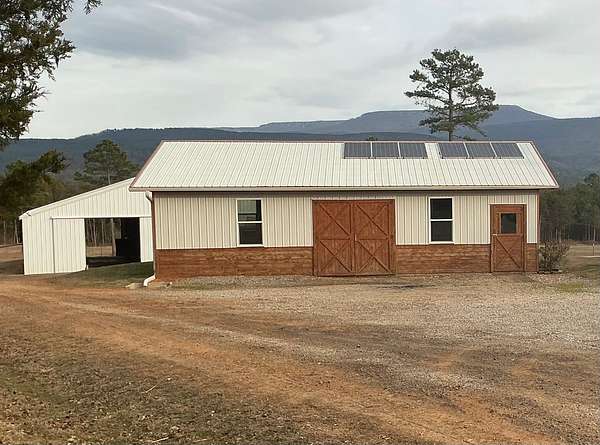 Experience timeless craftsmanship and self-sufficient country living in this beautifully constructed home set on 29.38 acres m/l. Designed with quality, simplicity, and durability in mind, this home offers the perfect blend of comfort and independence. The main level features 3 bedrooms and 2 full bathrooms, large open kitchen with a generously sized pantry, a side entry to the home with mudroom area, and a nice large living room with windows capturing a beautiful view of Mt. Magazine. From the living room you step out onto a gorgeous cedar wood deck with those same Mountain View's ! The deck is covered and very spacious, perfect for entertaining or just that morning cup of coffee and a good book. The walkout basement expands your living options with a complete second kitchen, laundry area, and full bathroom. This space gives you extra room for guests or extended family. This extra kitchen space also makes a great place to can and store food. Upstairs, a bonus room currently used for storage offers flexible space that could easily be transformed into additional living quarters or hobby room. This property is set up for sustainable living with solar power , while still being wired for conventional electricity if desired. Outside you will find a well built barn (50x48), workshop (40x30), a nice garden spot, fenced land for livestock, and a nice pond. Whether you're seeking a working homestead, a private mountain-view retreat, or a place to build your family, this one of a kind property offers opportunity, craftsmanship, sustainability, natural beauty and room to grow.