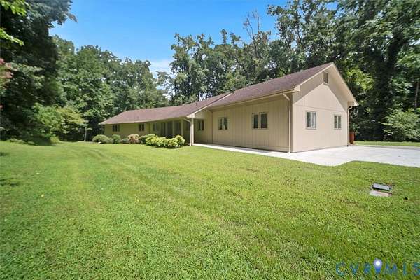 Exceptional ranch-style home situated on a secluded 2.78-acre lot in the desirable Walnut Hill area. This custom-built, one-level residence offers no-step entry and is fully handicap accessible, including an elevator from the basement garage to the main living level. Meticulously maintained, the home features hardwood floors throughout, brand-new carpet in the primary bedroom, and a freshly painted interior. Additional highlights include a dimensional shingle roof, extensive decking, central vacuum system, and an impressive basement garage accommodating up to six vehicles. Comfort and efficiency are enhanced with gas forced-air heat, plus a separate heat pump serving the primary bedroom suite. Enjoy the inviting great room fireplace and a professionally designed gutter and downspout system with hard-piped drainage. Ideally located just 8 minutes to Fort Lee, 10 minutes to Old Towne restaurants and shops, and 23 minutes to downtown Richmond. A rare opportunity offering privacy, accessibility, and exceptional convenience.