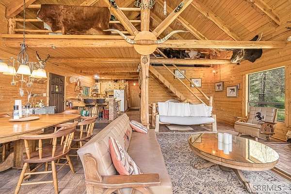 Rustic 4-Bed, 2-Bath Cabin on 2 Acres in the Heart of the Forest Escape to this charming 4-bedroom, 2-bathroom cabin nestled on 2 private acres surrounded by forest. With no visible neighbors on two sides and backing up to over 300 acres of privately owned land, this is true mountain seclusion with year-round access-thanks to subdivision-maintained roads in the winter. Wildlife frequently visits the property, offering an authentic nature experience. The cabin features forest views from every window, unique architectural angles, and skylights upstairs that bring in natural light and treetop views. The detached single-car garage includes a treehouse-style room above-perfect as a fun kids' retreat, extra storage, or a cozy indoor camping spot. Enjoy the outdoors on the full-length back porch-ideal for dining, relaxing, or simply soaking in the serene surroundings. Inside, a large game room in the basement adds more space for entertaining or family fun. The property comes fully furnished and stocked with daily essentials-ready for you to move in and enjoy. Located just minutes from the local golf course and a few miles from the southern entrance to Yellowstone National Park. Plus, you can ride straight of the lot to nearby atv and snowmobile trails.