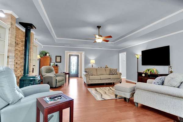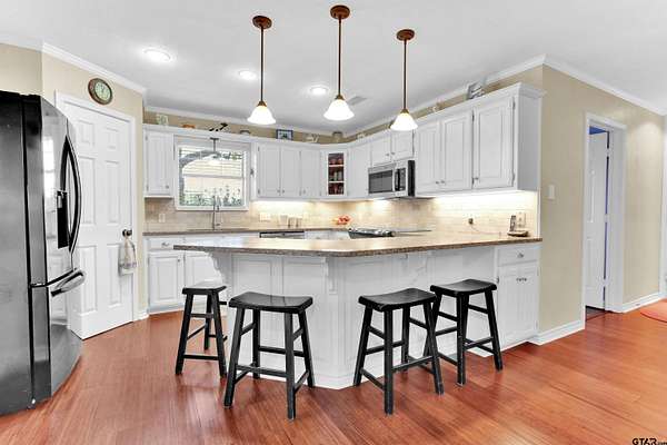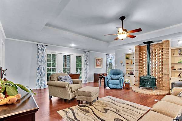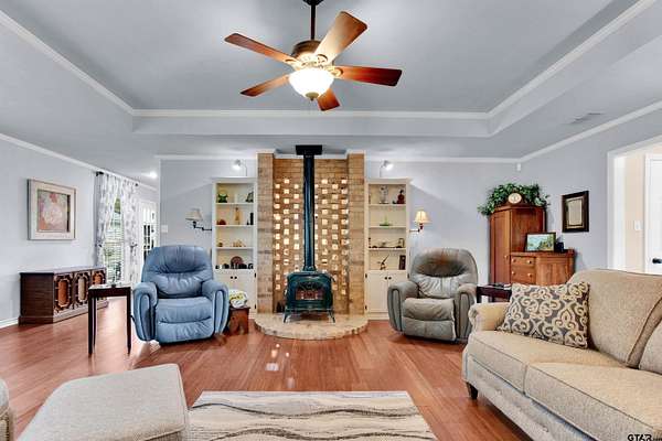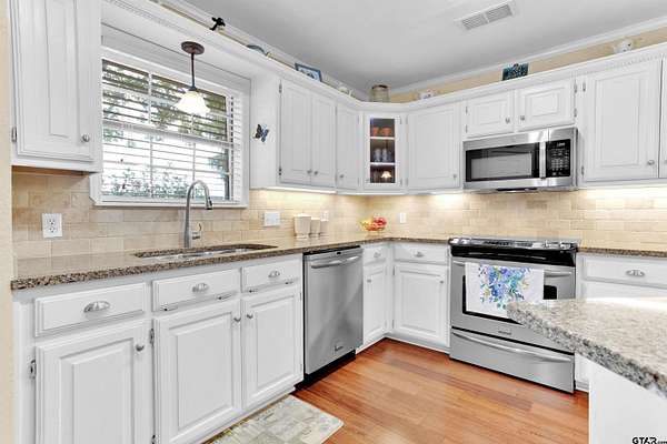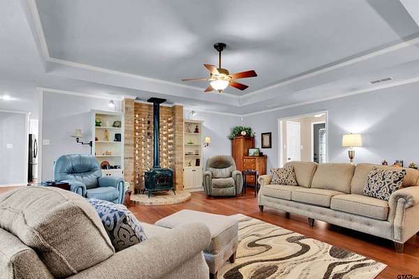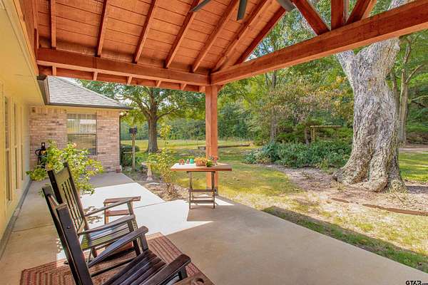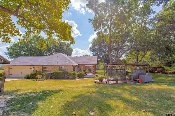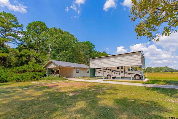 Charming Country Retreat on 5.26 Acres Welcome to your peaceful haven on 5.26 acres, perfectly situated on a country road that offers easy access to Interstate 20 and downtown Lindale, Texas. This custom-built beauty features three spacious bedrooms and 2.5 baths, providing ample room for family and friends. As you enter, you'll be greeted by a generous living room, highlighted by an exquisite old wood-burning fireplace that radiates warmth throughout the home. Then as you step into the heart of the home--the open kitchen--where culinary creativity comes alive. With ample space for cooking and entertaining, it's the perfect spot to prepare your favorite recipes and share meals with loved ones and friends. Adjacent to the kitchen space, you'll find a large walk-in laundry room conveniently located off the two-car garage, making daily tasks a breeze. The backyard is your personal oasis, adorned with gorgeous flowers and lush trees that provide a tranquil, shaded escape. Imagine spending leisurely afternoons on the expansive covered porch, watching hummingbirds flit about and listening to the soothing sounds of nature. For those with adventurous spirits, there's a dedicated RV shelter, 31 ft long x 18 ft wide x 12 ft high with a 30 amp plug in. The versatile man cave offers endless possibilities, whether you envision it as a workout space filled with your favorite exercise equipment, a cozy guest room for the guests, or a charming craft room to unleash your creativity. Spanning approximately 2,000 square feet, this beautifully designed home embraces you with comfort and style. Start each day by sipping your morning coffee while watching the sun rise over your property, painting the sky in a breathtaking array of pinks, reds, and blues--a daily reminder of the beauty that surrounds you, your beautiful home and the 5.26 acres that it sits on. Embrace country living with convenience, charm, and endless possibilities at this exquisite home.