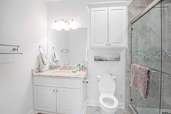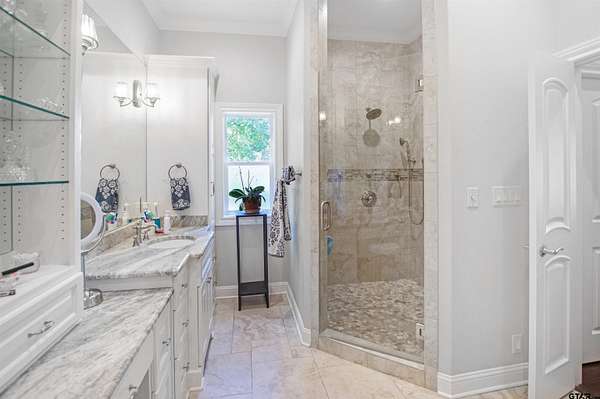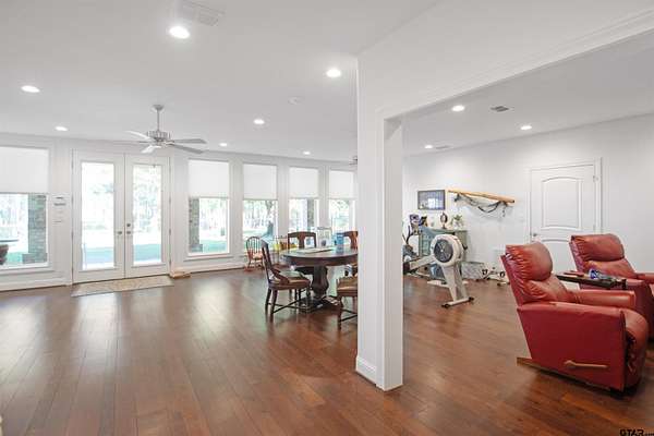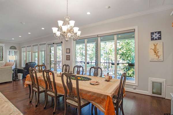 Welcome to this exquisite 5-bedroom, 5-bathroom waterfront home on the stunning shores of Lake Palestine. With three stories of thoughtfully designed living space, a 3-car garage, RV carport, private elevator, and full wheelchair accessibility, this property perfectly blends luxury, comfort, and functionality--making it the ultimate lakeside retreat. Step inside to breathtaking water views and abundant natural light pouring through the home's 6x3 glass windows and six elegant French doors. The spacious living room centers around a beautifully crafted fireplace, creating a warm and inviting focal point while showcasing the lake beyond. The kitchen is a chef's dream, featuring elegant countertops, generous storage, induction cooktops, a built-in ice maker, and a wine cooler in the large island--perfect for entertaining. The pantry, complete with library-style ladders, adds both practicality and charm. Every fixture throughout the home has been carefully chosen, blending craftsmanship with timeless luxury. With a designated office, flex space, and craft room with exceptional storage, you'll have endless versatility for work or hobbies. The grand master suite offers a serene escape with direct access to the 10x70 balcony overlooking the water. The master bathroom features dual vanities, custom cabinetry, and a bright, spa-like design. Downstairs, the basement provides limitless potential--ideal for a game room, gym, media area, or guest quarters. Each bedroom and bathroom is spacious and filled with natural light for comfort and flexibility. Outside, the 10x70 covered patio below the balcony offers another beautiful space to relax while taking in the lake's tranquil beauty. The large backyard provides endless possibilities--whether you dream of adding a pool, outdoor kitchen, or simply enjoying open space. To top it all off, this property includes access to a leased shoreline complete with a private boathouse and pier, giving you direct water access for fishing, boati