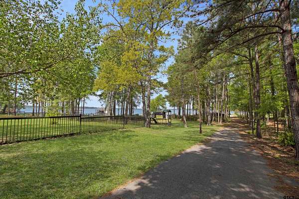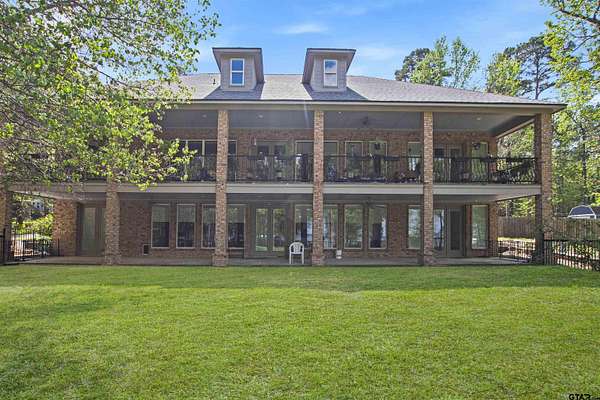 Welcome to this exquisite 5-bedroom, 5-bathroom waterfront home on the stunning shores of Lake Palestine. With three stories of thoughtfully designed living space, a 3-car garage, RV carport, private elevator, and full wheelchair accessibility, this property perfectly blends luxury, comfort, and functionality—making it the ultimate lakeside retreat. Step inside to breathtaking water views and abundant natural light pouring through the home’s 6x3 glass windows and six elegant French doors. The spacious living room centers around a beautifully crafted fireplace, creating a warm and inviting focal point while showcasing the lake beyond. The kitchen is a chef’s dream, featuring elegant countertops, generous storage, induction cooktops, a built-in ice maker, and a wine cooler in the large island—perfect for entertaining. The pantry, complete with library-style ladders, adds both practicality and charm. Every fixture throughout the home has been carefully chosen, blending craftsmanship with timeless luxury. With a designated office, flex space, and craft room with exceptional storage, you’ll have endless versatility for work or hobbies. The grand master suite offers a serene escape with direct access to the 10x70 balcony overlooking the water. The master bathroom features dual vanities, custom cabinetry, and a bright, spa-like design. Downstairs, the basement provides limitless potential—ideal for a game room, gym, media area, or guest quarters. Each bedroom and bathroom is spacious and filled with natural light for comfort and flexibility. Outside, the 10x70 covered patio below the balcony offers another beautiful space to relax while taking in the lake’s tranquil beauty. The large backyard provides endless possibilities—whether you dream of adding a pool, outdoor kitchen, or simply enjoying open space. To top it all off, this property includes access to a leased shoreline complete with a private boathouse and pier, giving you direct water access.