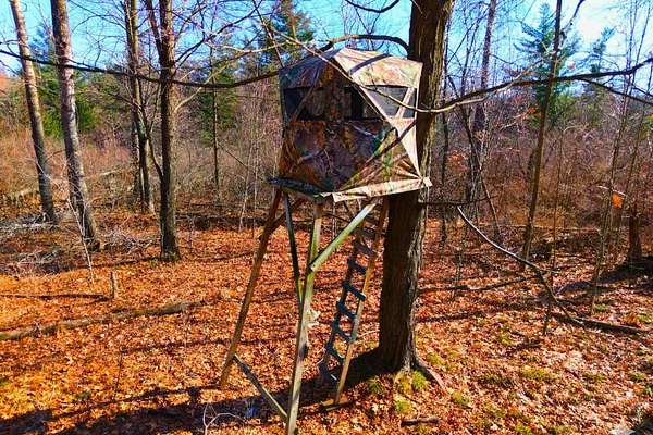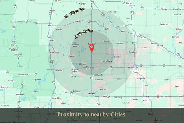30 Acres of Dense Cover, Water, and Natural Movement in Prime Mecosta County Location. Located at 15643 30th Avenue in Remus, the property offers paved road frontage with year-round access and a layout that hunts well beyond its acreage. The land is predominantly wooded and classified as wetlands, creating dense lowland habitat that supports whitetail bedding and consistent wildlife activity. Surrounded by agricultural ground, the property functions as a security and cover component within the local landscape. The terrain is generally firm and accessible on foot, with a network of existing trails and natural travel corridors throughout the property. Mature hardwood and oak timber provide seasonal mast production, supporting both deer and waterfowl use. Elevated deer stands and ground blind locations are present across the property, reflecting prior use and offering a starting point for future setup. A central feature of the property is the private pond system measuring approximately 230' x 45', shaped in a way that creates significant shoreline edge for waterfowl use. The pond is supported by a bordering creek that continues through the property, contributing to habitat diversity and seasonal water movement. Positioned within the Mississippi Flyway Middle Zone and in proximity to the Martiny Lakes State Game Area, the surrounding area is known for managed habitat and waterfowl activity. Additional improvements include a heavy-duty steel carport providing covered storage and a full-size camper currently positioned on the property. Electric service is connected, and a well is present on-site. A portion of the land near the driveway offers approximately five acres of higher, more usable ground. The property is located between Big Rapids and Mt. Pleasant, with convenient access to the US-131 corridor and proximity to the Muskegon River, known for its trout fishery and recreational use. This property supports a variety of wildlife, including whitetail deer, waterfowl, turkey, and other species common to the region, offering a well-rounded hunting environment with existing infrastructure in place. Boundaries are shown for reference.