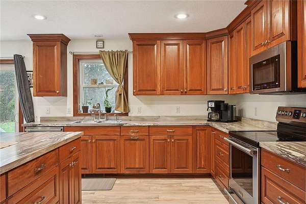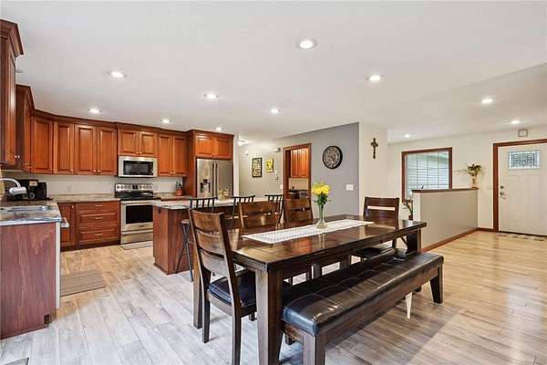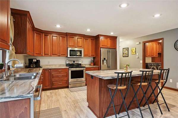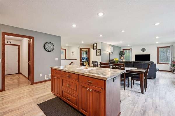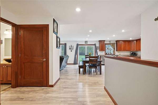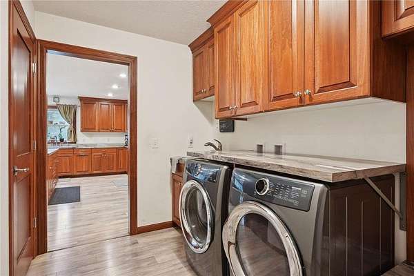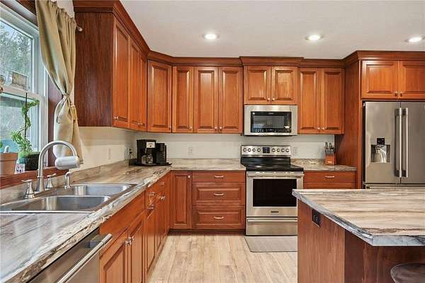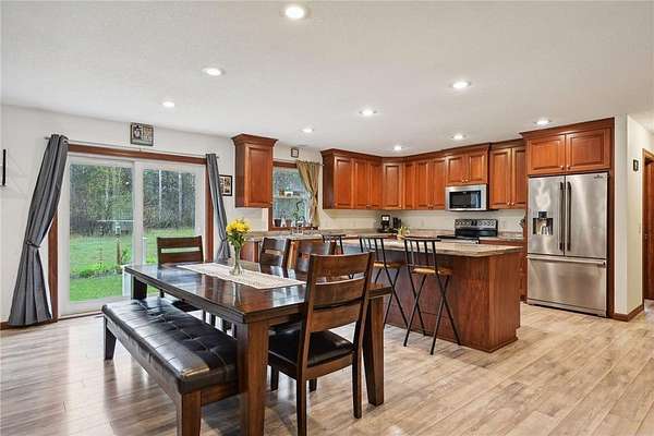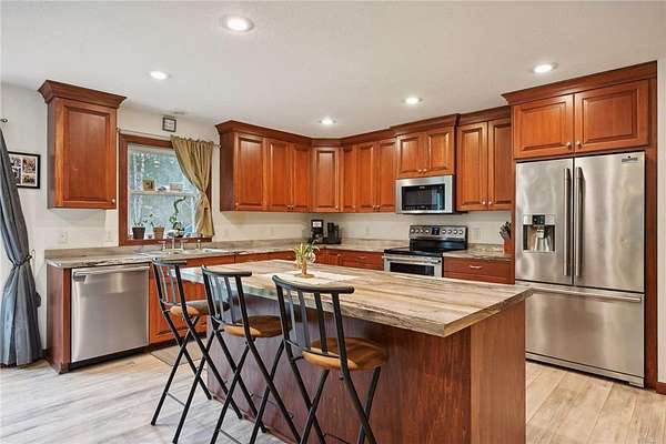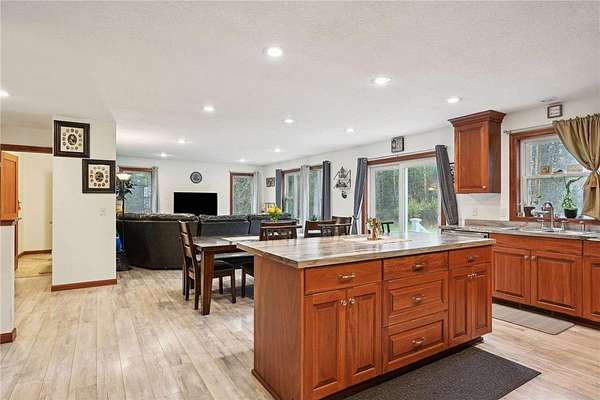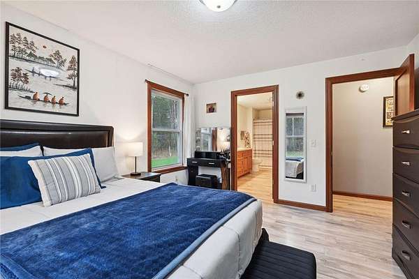 Welcome to this custom built 5 bedroom 3 bathroom home nestled on a beautiful wooded 5-acre lot. As you step through the front door, you are greeted by a spacious open-concept living area that includes the kitchen, dining room, and living room - perfect for entertaining and everyday living. The kitchen is a chef's delight with a large center island, stainless steel appliances, and stunning custom cabinetry that provides ample storage. This home features five generously sized bedrooms, each with custom-built closets designed to maximize organization and storage. The primary suite is a true retreat, highlighting expansive space and privacy. Three well-appointed bathrooms boast modern fixtures and finishes, providing comfort and convenience for owners and guests alike. The practicality extends with a dedicated mudroom and laundry area, featuring built-in lockers, making it easy to stay organized even on the busiest days. This home offers both privacy and a sense of community.