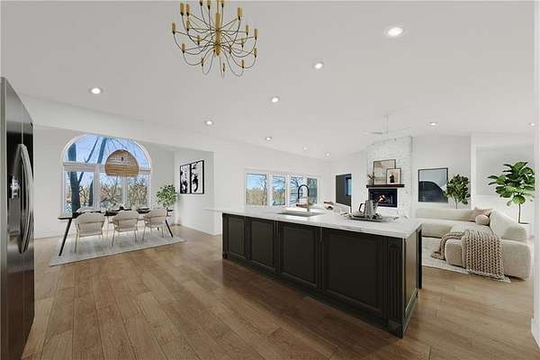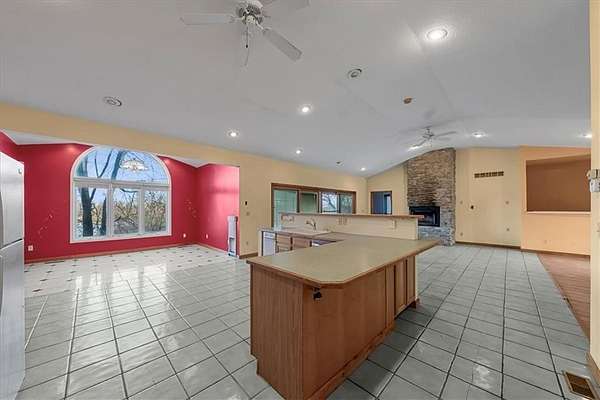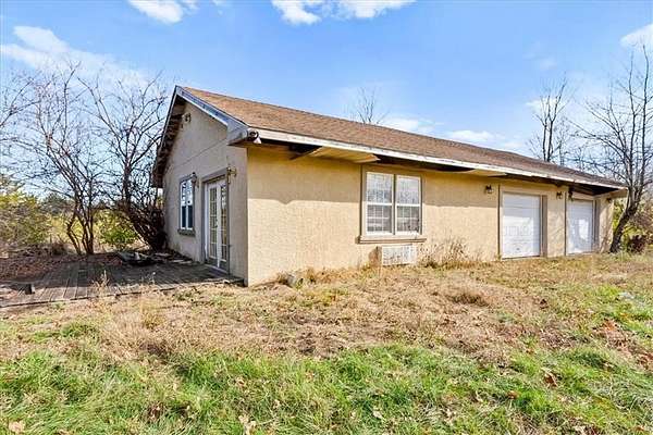 Escape to private, picturesque, and close-in country living with endless possibilities. Tucked away on a beautiful 24 acre setting on paved roads just outside the city limits of Lawrence, KS, this unique property offers a mix of mature woodlands, open pastures, a large pond and plentiful wildlife. At the center of this gorgeous land is a charming stucco, 2 bedroom, 2.5 bath, true ranch home offering 2146 sq. ft of main floor living area, an open floor plan with a large open great room with wood burning fireplace, an open kitchen with stained cabinets, an island with breakfast bar, a pantry, all appliances and a dining room with large radius picture window overlooking the gorgeous views of the pond. Rounding out the main level is a master suite with vaulted ceiling, large walk-in closet with built-ins, a master bath with stacked washer/dryer, jetted tub, walk-in shower, and water closet; an additional guest bedroom, a full bath with tiled shower/tub, and a half bath off the kitchen. The full walk-out basement was originally finished with an additional 1100 sq. ft. of living area including a recreation room, family room, 3rd bedroom, full bath and ample storage areas, but due to a water leak with subsequent mold, the basement has been remediated with floor and wall coverings removed down to the studs, which now await your personal decorative touches. Don't forget the matching stucco outbuilding/workshop/garage which offers a kitchenette, an office, a full bathroom, a mini-split HVAC and 4 overhead garage doors for all your cars, equipment and workshop needs.