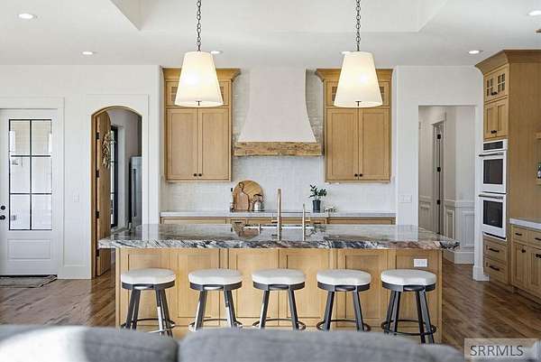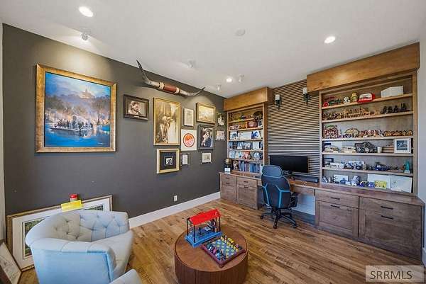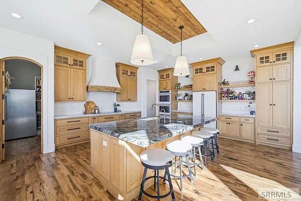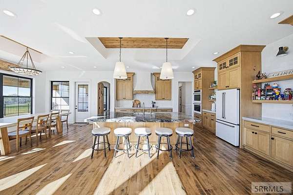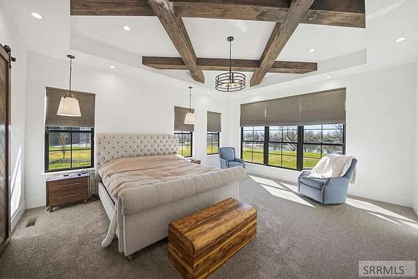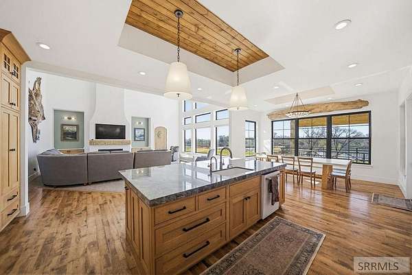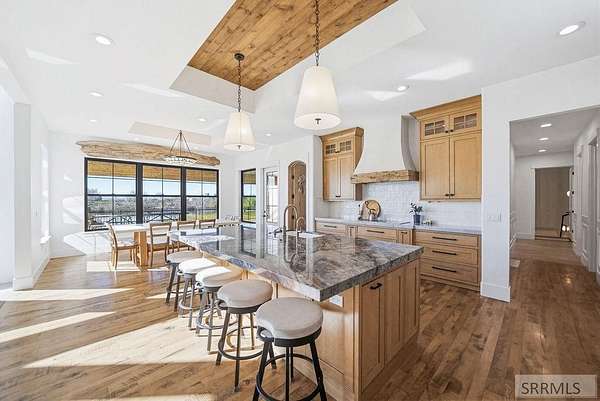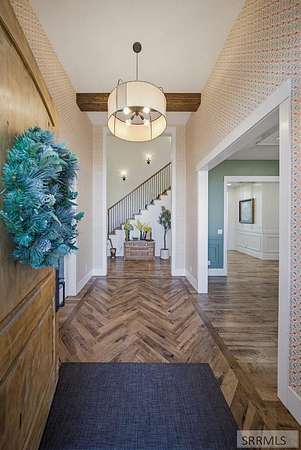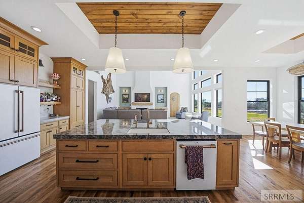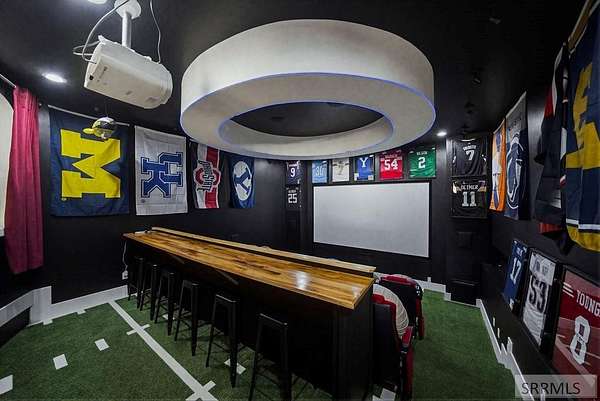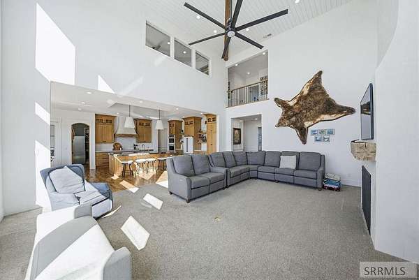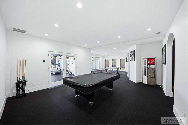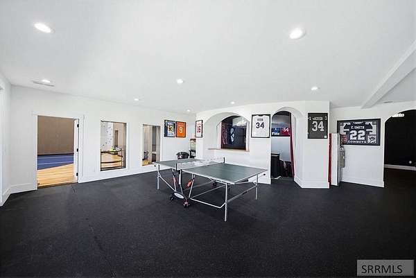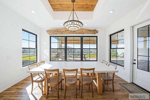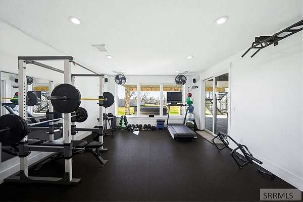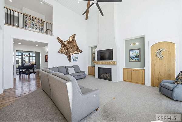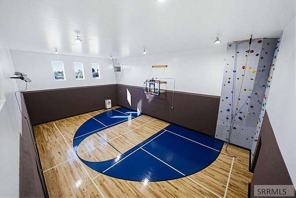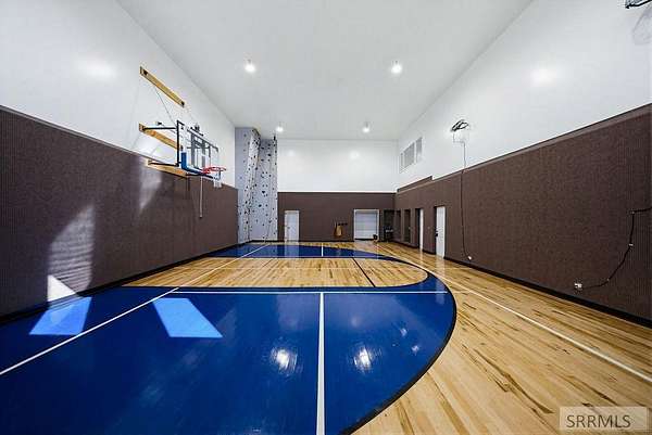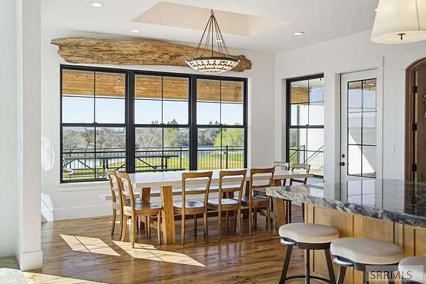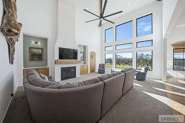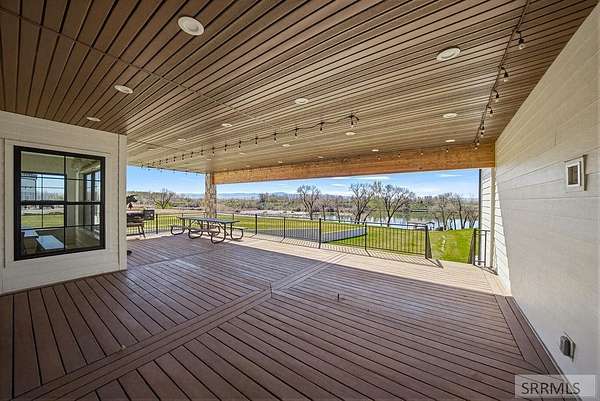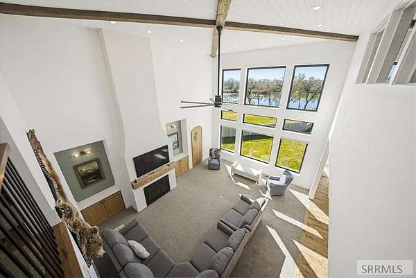 Located in the Prestigious Stone River Estates in Shelley this exceptional retreat checks all the boxes and many many more! Centered on over 300ft of Private Riverfront access this nearly 3 acre property has regular wildlife sightings and scenery that creates an unparalleled experience! Spanning more than 10,000 sq ft, This luxury residence offers 7 bedrooms and 8 bathrooms providing ample space for family and guests. Designed to fully embrace the stunning natural surroundings with an oversized covered patio with hot tub, huge back porch overlooking the private backyard, water slide down to the river's edge and a waterfront pavilion that includes power and drinking water. This very calm portion of the river creates unlimited water activities and is a sportsman's paradise with backyard hunting and fishing available. Additional standout features include an indoor basketball court, rock climbing wall, theater room with tiered seating, workout room/gym with future wellness center, vault/gun room, separate workshop and an oversized 5 car garage with EV charging. Conveniently located less than 5 minutes from I-15 with a direct stoplight free drive and less than 5 minutes to the Gem Lake Boat Ramp for any additional water recreation! This home truly is a destination!