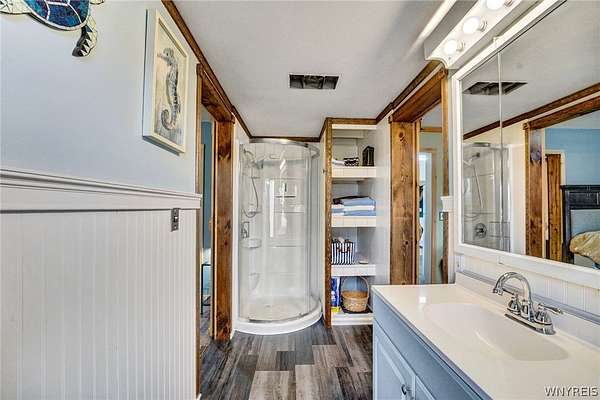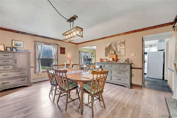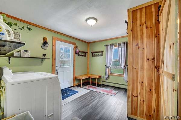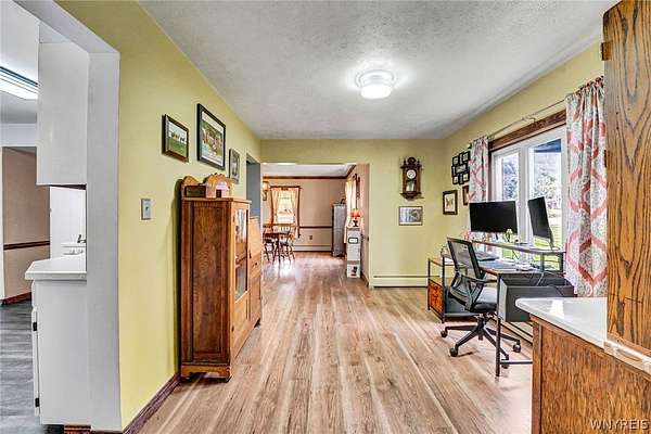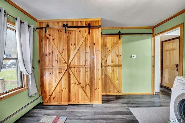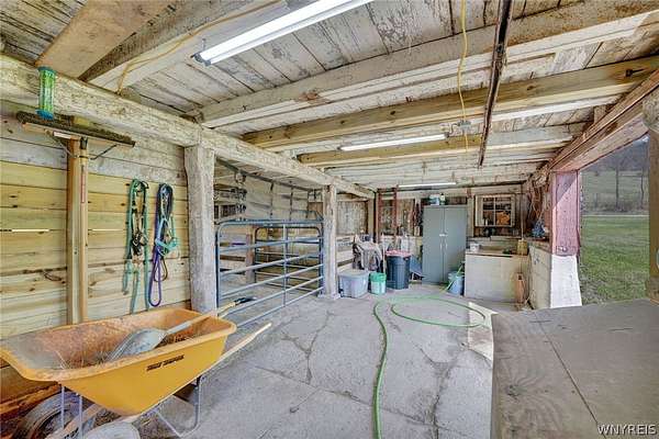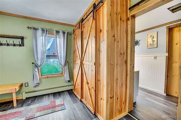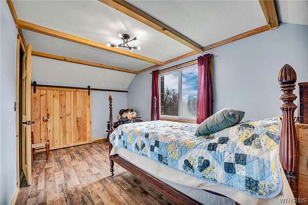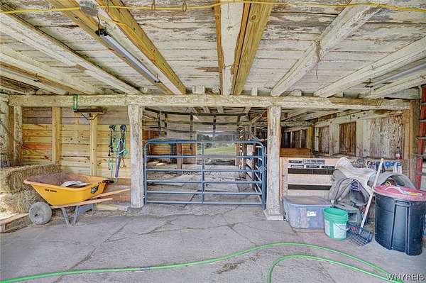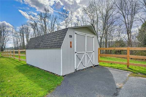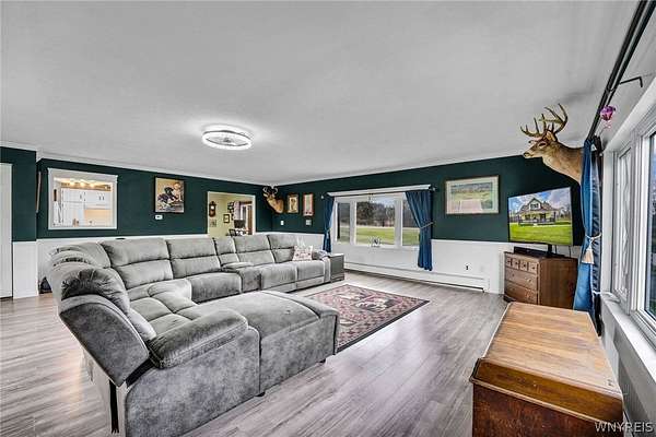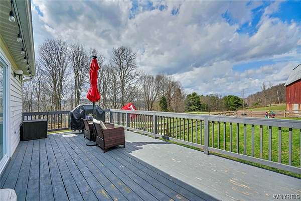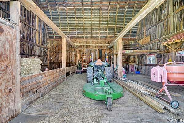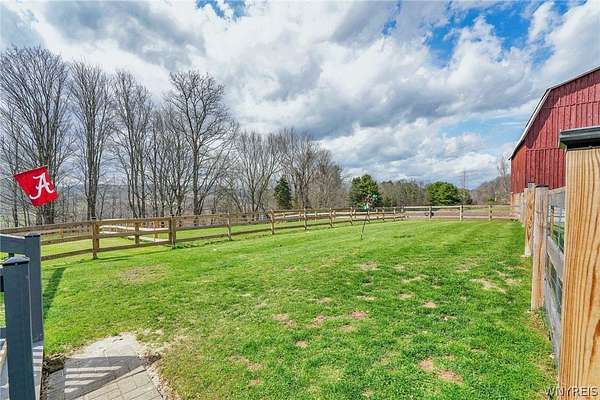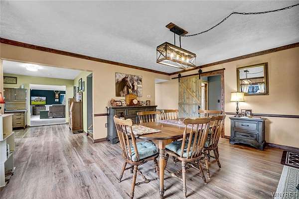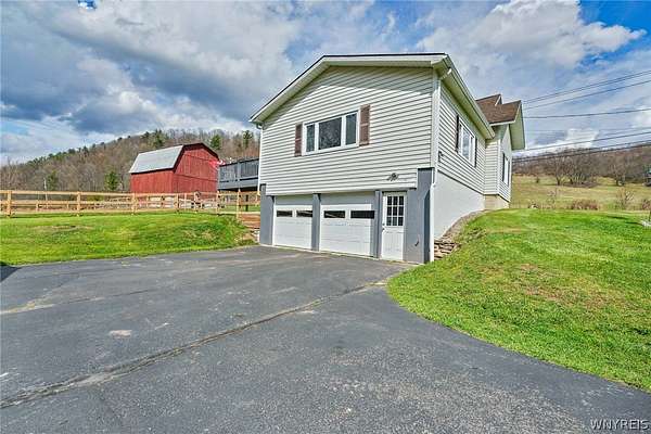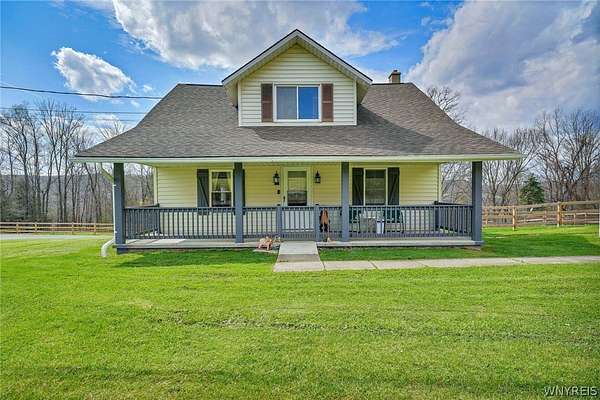 Experience the best of country living with room to roam, ride, and relax. Discover the perfect blend of modern farmhouse charm and country living in this fully remodeled farmette, set on beautiful acreage with nearly 1,000 feet of access along the Genesee River. A private trail system winds through the property, creating a serene connection to nature right outside your door. The home has been thoughtfully updated throughout with fresh paint, new luxury vinyl flooring, and attention to detail in every room. The inviting layout includes an essential spacious mudroom-a must-have for true farmhouse living-along with bright, open living spaces designed for comfort and style. Step outside to enjoy the large rear deck for entertaining and a covered front porch perfect for quiet mornings. For those who value functional outdoor amenities, this property delivers. A classic two-story barn features run-ins and stalls, ideal for horses or hobby livestock. Approximately 2.5 acres of new electric rail fencing provide secure, attractive pasture space. A fully fenced dog run offers convenience for pet owners. Storage and workspace are abundant with two detached garages, plus a heated attached two-car garage for year-round comfort. Hunters will enjoy having a newly built hunting blind. Whether you're dreaming of a hobby farm, a peaceful retreat, or a modern country homestead, this property offers a rare combination of updated living, practical infrastructure, and natural beauty along the river.