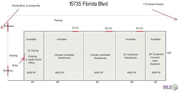 15735 Florida Blvd features 28,500 SF of office/warehouse space. Located on Florida Blvd +/- 0.2 miles West of the Florida Blvd & O'Neal Ln intersection. This location offers easy access to all of Baton Rouge, Denham Springs, and Central. The site also offers great exposure with 190.5 feet of frontage on Florida Blvd and average daily traffic counts of 20,406 vehicles per day. Extremely versatile space with the ability to service any office user to climate controlled storage. The purpose of the Light Industrial Zoning District (M1) is to permit light manufacturing, fabricating, processing, and wholesale distribution activities located near or adjacent to major thoroughfares.