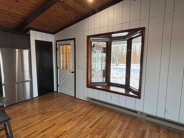 Don't miss this rare opportunity to own a newly renovated home nestled on nearly 5 wooded acres! Overlooking Big Gillett Lake a 33 acre quiet lake, this property offers stunning views from 2 sides while still providing exceptional privacy. Located on a dead-end road, you'll enjoy direct access to nearby trails & public land just across the way. Inside, the bright open-concept kitchen & living area features new appl & cabinets, large windows that frame beautiful lake views & abundant wildlife, . 2 freshly updated bdrms on the main level w/new carpeting, pallet accent walls, paint, & lighting. Walk-out LL offers even more possibilities, including space for potential 3rd bdrm. It also features a convenient mini-kitchen w/ample cabinetry, sink, refrigerator, & new backsplash, updated LL bath
