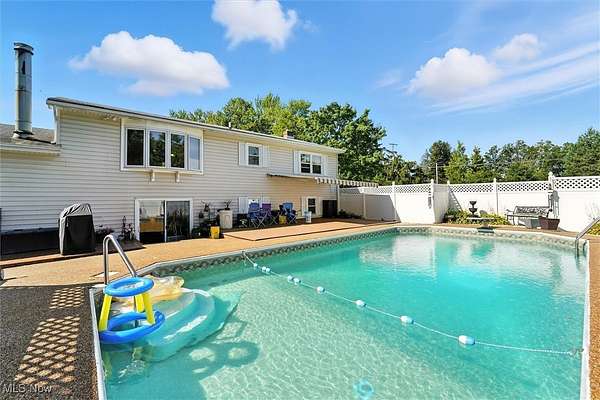Happiness & great memories resonate in this well cared for, much loved 1 owner home! Now its your turn to write the next chapter! Easy living 2 level split offers 4 nice sized bedrooms, full baths on both levels & a handy attached 2 car garage w/newly glazed Nature Stone flooring. The Lower level welcomes you in to the cozy carpeted family room, with a wood burning fireplace, brick feature wall, a handy corner area (11X10) just perfect for your home office space, the large laundry room, 2 of the bedrooms & most importantly - walk out access to the 32x16 pool! This is such an inviting set up & is the place where everyone who visits will want to be! Pool goes from 3-9 feet & has a brand new solar cover & a recent "leak proof" inspection. Relax in the shade with a book & a beverage under the Sunsetter awning, surrounded by the Nature Stone surface & the 2 Trex decks!(25x14 & 15x9) (one for dining and one for grilling!). The pool area is completely fenced for privacy & protection in maintenance free vinyl. The Pool components have always been kept inside the garage-not exposed to the weather. The Upper floor offers 2 more bedrooms, a large Living Room with a picture window overlooking the pool, a dining area, roomy kitchen, oak cabinets, Corian counters & an island that seats 5 for extra dining space.Outside there's plenty of mature landscaping, a cute 2-pond water feature, the well maintained asphalt driveway, lots of yard space for games & entertaining & the detached garage. Garage is 32x24, w/concrete floor, WB stove & is wired for a generator. Extra space can be found in the attached 16x10 shed. The sellers are leaving the extra replacement glass for the front door & the Cub Cadet mower, for your mowing pleasure. Carpets have all been freshly cleaned (August 2025) & septic pumped in May 2025 (3 tanks). Sump crock is outside of the house, in the front yard area. Sellers usually shut down the pool in the 2nd week of September-so get here soon!