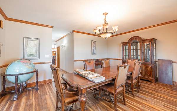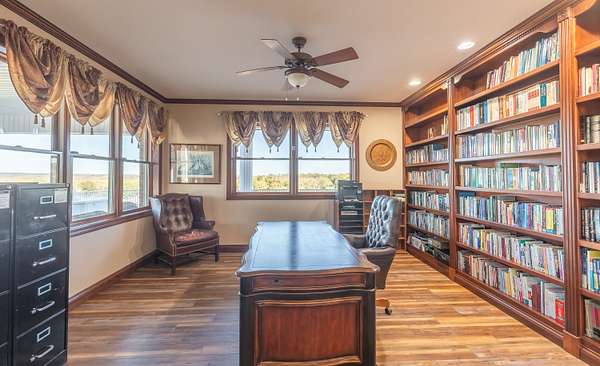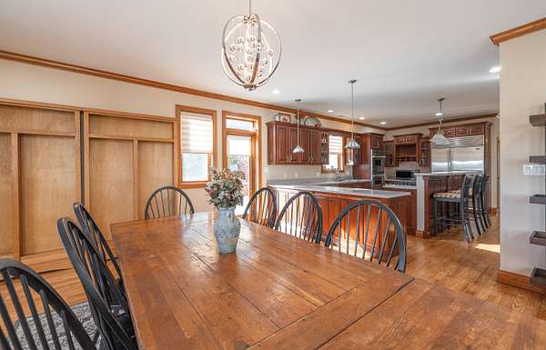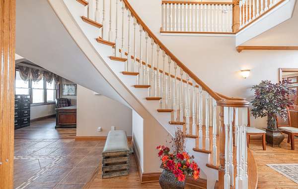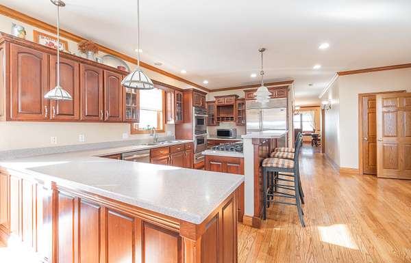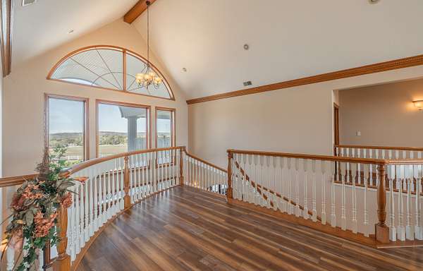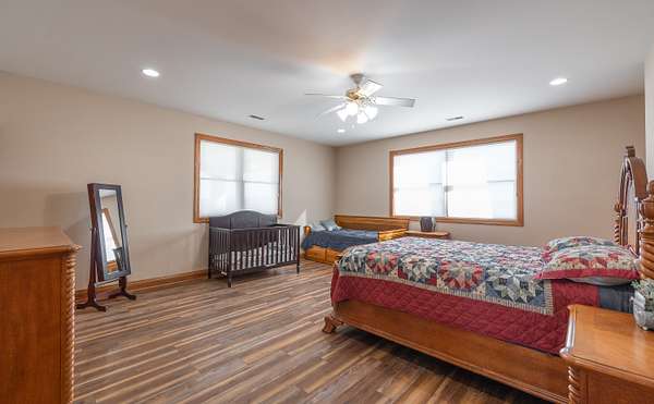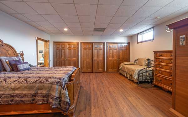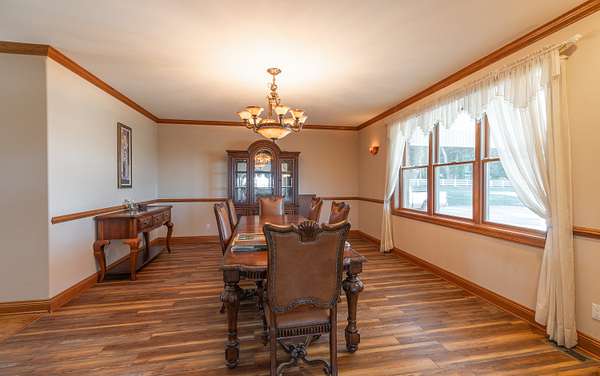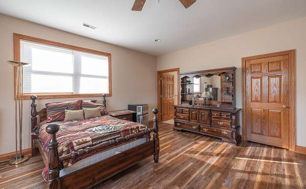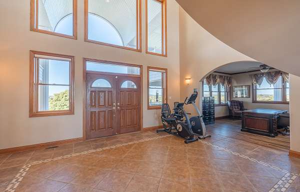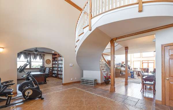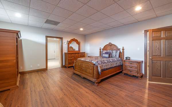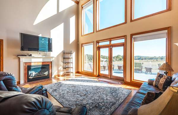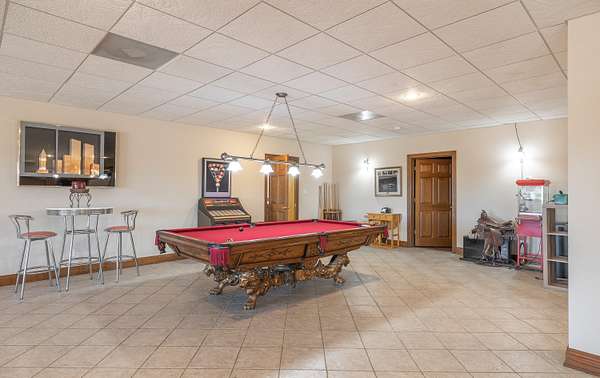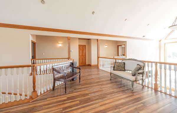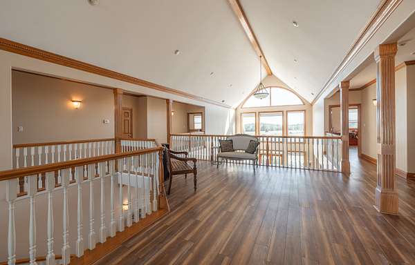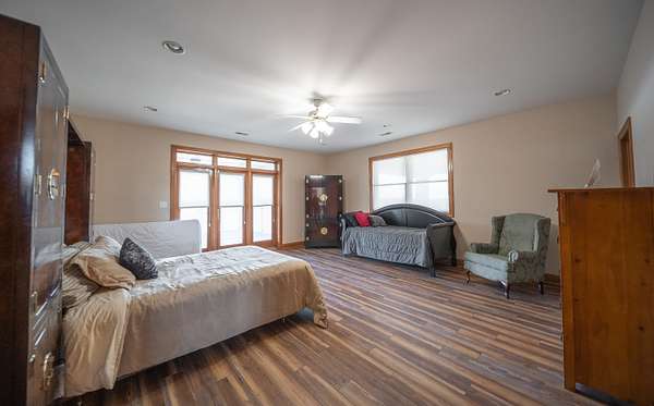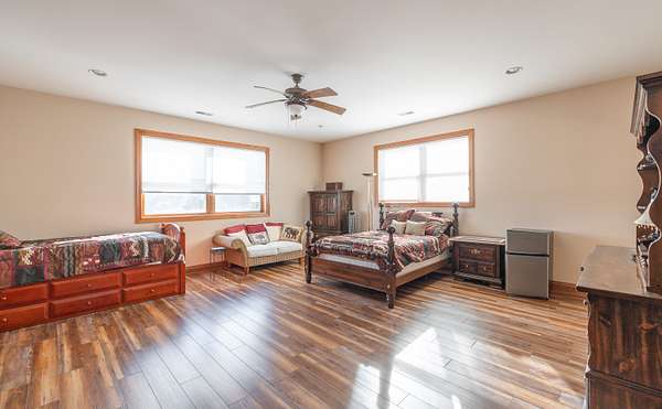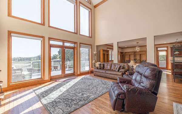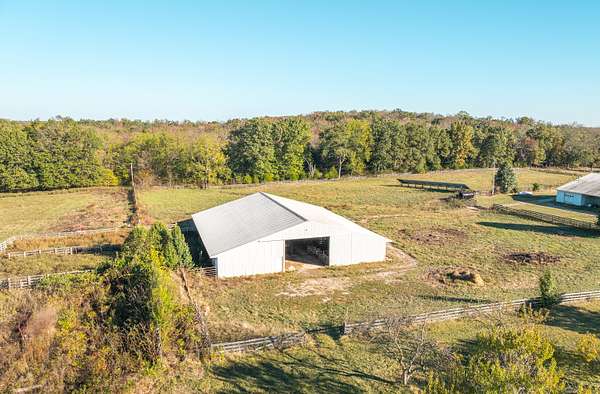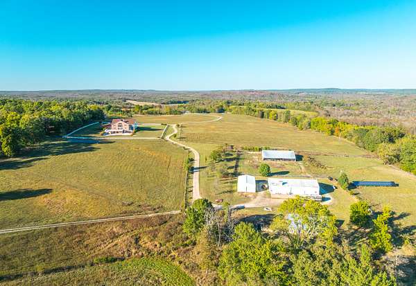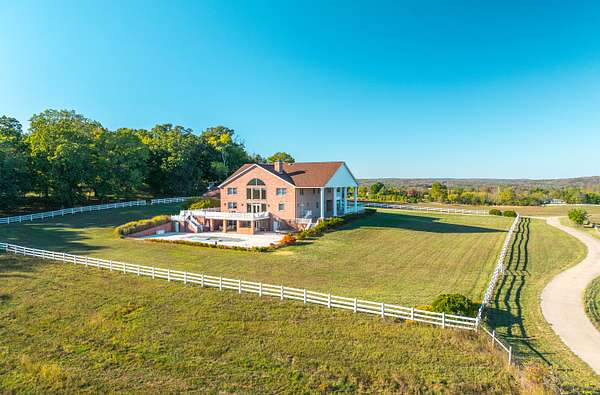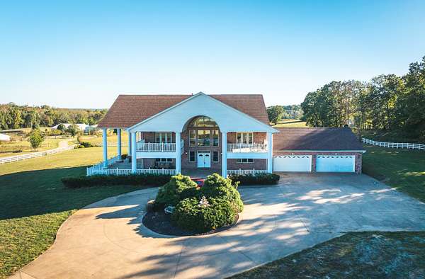Fischer Farm and Ranch Estate - Turnkey, Multi-Use Property! This 122+ acre working farm combines productivity, comfort, and self-sufficiency. Designed for livestock, crops, and residential living, the property includes multiple water sources, extensive fencing, and high-quality improvements throughout. Land and Water Features: Two ponds, seasonal springs, and a year-round creek provide abundant water. Three wells, six automatic cattle waterers, welded wire perimeter fencing, and cross-fenced pastures make this property livestock-ready. Four pastures, including a smaller barnyard pasture, each have multiple water sources for easy rotational grazing. Vinyl fencing lines the road frontage and surrounds the main home. Concrete driveways provide easy access to barns and home, and a 1,000-gallon diesel tank services machinery. Barns and Outbuildings: o Main Barn ("Grandma's Barn") - Three apartments (two wheelchair-accessible, one caretaker) with full kitchens, baths, laminate floors, and individual heating/cooling. Common area includes laundaronia, and three types of seedless grapes. Main Residence: Brick home with 6 bedrooms plus 2 sleeping rooms and 8.5 baths. Main-floor primary suite, four upstairs bedroom suites, and three basement suites (two non-conforming). Each bedroom has a full bath and walk-in closet. Two kitchens and three laundry areas support multi-generational living or staff. Main kitchen includes Viking/Sub-Zero appliances, cherry cabinetry, large pantry, and breakfast bar. Professionally refinished oak floors, tiled entries, and laminate bedroom floors complete the home. Living areas include cathedral ceilings, gas fireplace, south-facing windows with remote blinds, and French doors to patios overlooking the 22,000-gallon fiberglass pool. Outdoor entertaining is enhanced by patios on three sides, overlooking pastures, ponds, and natural scenery. Infrastructure and Systems: Steel-stud construction, Anderson windows, central vacuum, conduit wiring, three geothermal HVAC systems (main replaced 2025), five 40-gallon water heaters plus on-demand unit for master bath. Solar power via 104 SolarEdge panels with net metering. Four 200-amp electrical panels (800 total amps), buried 1,900-gallon LP tank, and cellular booster ensure full functionality. Summary: A rare opportunity blending high-quality infrastructure, multi-generational housing, livestock-ready land, and sustainable features. Ideal for cattle, crops, or a full-time rural homestead with income potential. This property is fully equipped for productive living, comfort, and convenience. Schedule your private tour today to experience this one-of-a-kind farm and ranch estate!