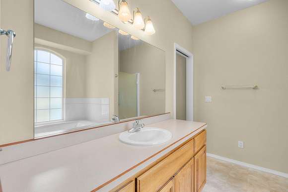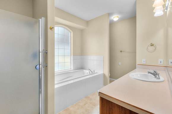 - Breakfast Bar, Ceiling Fan(s), Double Vanity, Fiberglass Stall Shower, Laminate Counters, Linen Closet, Shower/Tub Combo, Soaking Tub, Walk-In Closet(s)