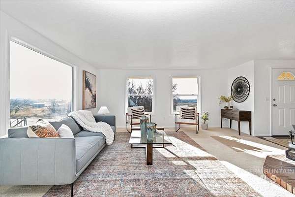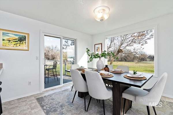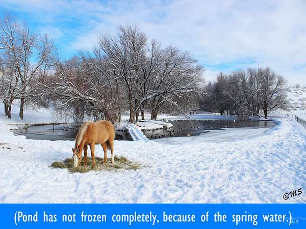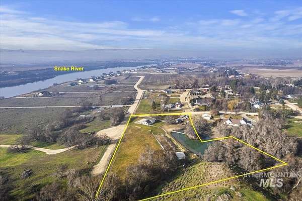 A rare opportunity to own a slice of Idaho Paradise! Great Location and Spectacular Views make this country home with 4.5 acres (3 platted building lots) a MUST SEE! Stunning views including the Snake River below and the Owyhee Mountains across the Valley. Imagine your own private retreat with a year-round, spring-fed Pond with bridge access to its Island, a natural drainage Creek meandering through the acreage (w/water rights) combined to create an 8' Waterfall, and an abundance of Aquatic Wildlife. You'll experience character unusual for this area including varied terrain with natural landscaping, a hill overlooking the acreage, a large garden space with mature grape vines, an orchard with numerous fruit and walnut trees, green and dry pastures for horses with a building for shelter and/or hay storage. Beautifully laid out with plenty of open space to appreciate nature and the tranquility of country living. Inside you'll find an inviting atmosphere with 4 bedrooms, 2 living spaces, large picture windows filling the home with natural light, a quaint kitchen, and a fully fenced backyard. Recent updates include new concrete sidewalks in the front of the home, new front door & sliding glass door in the dining room, new paint in the main & lower level, new kitchen sink & hardware. Perfect for those seeking peaceful privacy, but minutes from local conveniences, shopping & Lake Lowell.