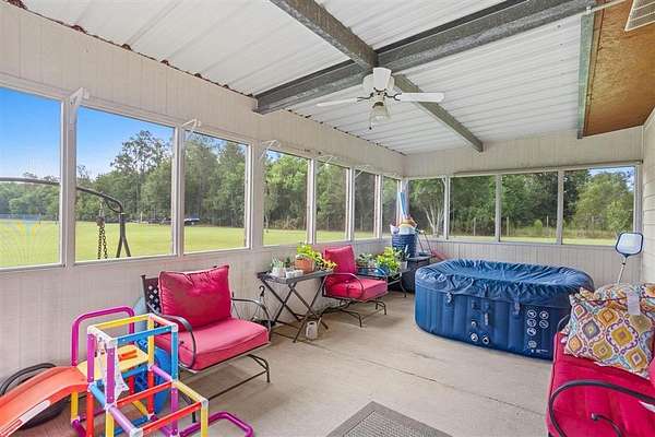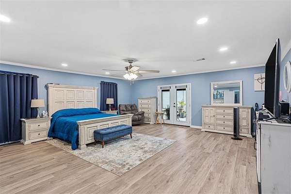 Qualified for 100% Financing -- Zero Down Payment! Discover country living at its finest in Moss Bluff, LA! Enjoy the peace and privacy of over four beautifully landscaped acres, all while being just minutes from local shopping, dining, and everyday conveniences. This charming 4-bedroom, 2-bath home welcomes you with a classic front porch featuring decorative columns and iron railing--perfect for morning coffee or evening sunsets. A screened-in back porch offers an ideal retreat for relaxing and taking in the serene country views. Inside, you'll find a bright, inviting living area and an updated kitchen adorned with white cabinetry, quartz countertops, and matching white appliances. A second, spacious den provides plenty of room for gatherings or entertainment. The massive primary suite is nearly 500 square feet and showcases crown molding, recessed lighting, French doors to the porch, and luxury vinyl plank flooring throughout. The en-suite bath offers a spa-like experience with a dual-sink vanity, soaking tub, separate glass shower, and an oversized walk-in closet. Don't miss out schedule your showing