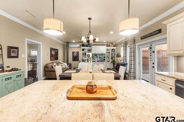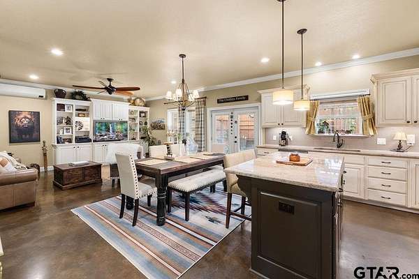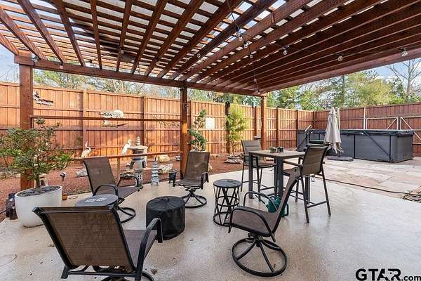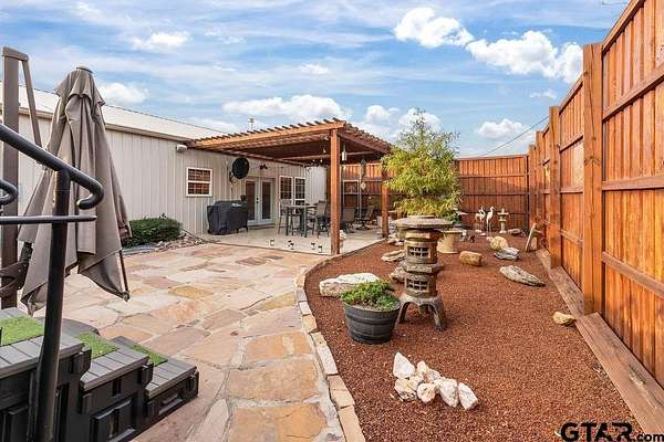 Discover the perfect blend of comfort, privacy, and East Texas charm at this gated 2-bedroom, 2-bathroom barndominium on 1.6 acres. Each bedroom features its own en-suite bathroom and spacious walk-in closet, giving everyone their own private retreat. Step inside to an inviting open-concept living room and kitchen, designed for easy living and entertaining. The living area features a wood-burning stove, perfect for cozy winter days and nights. The kitchen offers a central island for prep and serving, a propane gas cooktop, ample counter space, and a functional layout ideal for cooking and gathering. Outside, enjoy true seclusion with a fully private patio surrounded by a 10-ft privacy fence. Relax beside the tranquil koi pond, or unwind and exercise year-round in your very own swim spa. The heated and cooled garage, complete with epoxy flooring, adds versatility--perfect for parking, hobbies, or a workshop setup. This unique property delivers the peaceful lifestyle you've been looking for with thoughtful upgrades inside and out. Don't miss the chance to call this gated barndominium your next home.