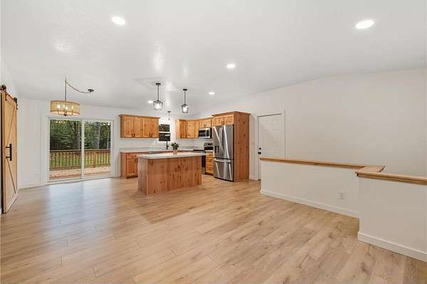 This immaculate, fully remodeled 3-bedroom, 3-bath home set on 4.23 beautiful acres, offering both privacy and space to enjoy the outdoors. The property features an attached double garage and a spacious 16'x24' detached garage, perfect for extra vehicles, storage, or workshop. Step into the stunning kitchen, complete with a large island ideal for entertaining and a generous pantry for all your culinary needs. All new mechanicals and newly finished lower level. Don't miss out on this exceptional opportunity to own a move-in-ready home that combines modern updates with the privacy of country living, only minutes from town.