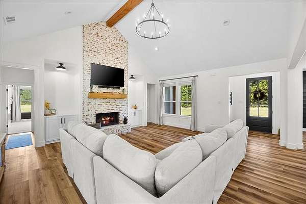 Beautiful 4 bedroom, 3.5 bath home situated on 2 private, fenced acres in the desirable Caddo Mills ISD. This property offers a thoughtful layout and high-end finishes throughout. The main living area features vaulted ceilings and an abundance of natural light. The gourmet kitchen is designed with quartz countertops, custom cabinetry, gas appliances, opening to a spacious dining area. Kitchen opens up to the living area with vaulted ceiling and decorative wood burning fireplace. A private study, mud bench off the garage entry, and a well-planned laundry room with space for a refrigerator provide both style and functionality. The primary suite is generously sized and includes a spa-like bath with a soaking tub, dual shower heads, and a custom walk-in closet. Secondary bedrooms include one with a private en-suite and two that share a convenient Jack and Jill bath. Upstairs, a large game room offers additional living and entertaining space. Outdoors, mature trees provide a natural green screen for privacy, while the 3-car garage adds ample storage and parking. This property combines elegance, comfort, and modern design in a serene setting.