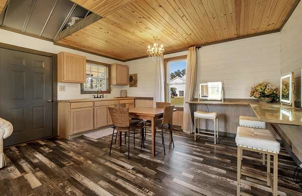 Wyldswood Farms Event Venue, nestled in the heart of North Florida, where natural beauty meets rural charm. Spanning nearly 70acres, this turnkey estate currently operated as an event venue, features a classic farmhouse with attached guest quarters, a separate cottage, and an expansive event building ready to host 200+ guests. With a tranquil gazing pond, storybook gazebo, and century-old oaks anchoring the land, it's a rare blend of picturesque countryside and event-ready infrastructure. The stunning farmhouse blends timeless architecture with curated interior design, featuring a full kitchen, dreamy living space with stone hearth, a half bath, luxurious first-floor primary suite complete with a jacuzzi tub, walk-in shower, and private sitting room. Upstairs, a second bedroom and bath offer comfort and privacy, while a grand loft overlooks the warm hearth and open-concept living space below-perfect for gathering, dreaming, or simply soaking in the view. The attached guest cottage welcomes with a spacious first-floor living and gathering area, while the second floor features a full kitchen, private bedroom, and bathroom-perfect for extended stays or hosting with ease. Guest cottage also features a sunny patio ideal for unwinding around the firepit in the evenings. The additional mini cottage features a cozy sitting area, partial kitchen, and dedicated makeup bar-ideal for bridal prep or guest pampering. With a private bedroom and full bath, it's just steps from the event venue, offering both convenience and comfort. The main event hall offers two distinct gathering spaces, elegantly divided by chic barn doors and anchored by a custom-designed sleek bar. With capacity for 200+guests, the venue includes a partial kitchen, private office, and luxurious restrooms for men and women-each featuring four private stalls-plus a dedicated employee bath. Multiple entrances and exits, abundant natural light, and flexible lighting options-from bright overheads to tranquil string lights-make this a turnkey space for weddings, retreats, and celebrations. The Farmhouse + attached guest home offer 4,450 SF of space, the additional mini cottage provides 760 SF, and the event hall, 3,712 SF. A well-equipped pole barn with electricity and ample storage houses the tools and equipment needed to maintain the property with ease. Cross-fencing throughout the acreage provides secure, functional space for livestock or agricultural use-ready for farming, grazing, or hobby homesteading. With a total of 4 buildings offering 4 bedrooms, 4 full baths + 2 half bathrooms to accommodate guests, an event building designed to host 200+, and just under 70 acres for endless expansion potential, this North Florida gem is ideal for income producing hospitality OR muti generational and homestead living. Floor plans with square footage for each building are attached. Realtors: please have proof of funds or financing preapproval letter available. Entrance gates via Golf Course Road and Pine Bluff Road.
