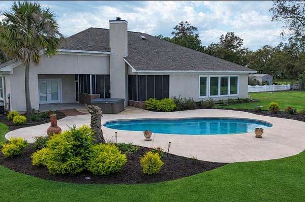 Stunning home that's updated with over nine acres, a pool, a pecan orchard, and much more. This home has a saltwater pool and a Hot Tub. It just had two new four-ton A/C units installed. It is conveniently located between Columbia and Monroe, just minutes from Highway 165. Some of the latest updates include brand-new flooring throughout the house and new soft-close cabinets with under-cabinet lighting. There are quartz countertops throughout the home. In the kitchen, you will find a sprawling island, a gas stove with a griddle, a pot filler, a cup cleaner in the sink, and stainless steel appliances. The living room is spacious and has its own bar. The back porch is screened in with a kitchenette and a bathroom. The home features three gas fireplaces and a three-car garage. Recessed LED lighting, along with crown molding, is throughout the house. The master bathroom has a whirlpool bath and a large shower. The bathroom mirror is an LED anti-fog mirror. The master closet has tons of storage and is the size of a room. There is a laundry room that has its own sink. Outside this home, you will find pecan, cedar, palm, and pine trees. The home is not in a flood zone, and there are no known restrictions.