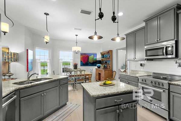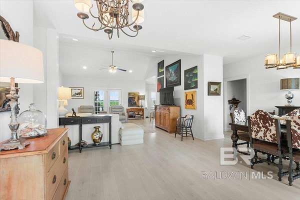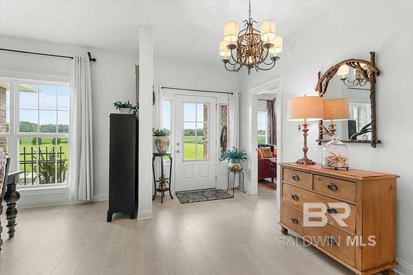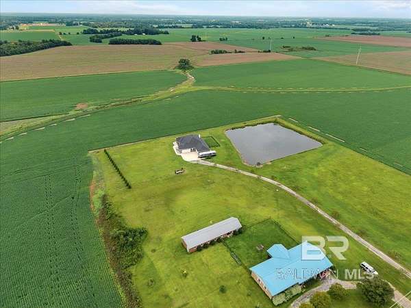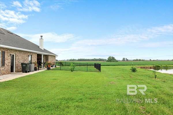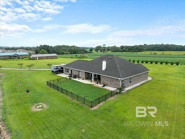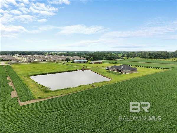 Oasis Privacy in a Busy World. Gold Fortified gem tucked away in rural Foley! Boasting 4 spacious bedrooms and ~3 acres, this beautiful property feels like your peaceful refuge from the world. Meander down the long drive, away from traffic to views of your large pond. The Bass and Bream stocked pond enjoys a breeze all the time and provides a peaceful retreat after a long day. The home boasts two Double Garages, ensuring abundant parking and storage space! Step inside to the Dining Room on your right, and a front Guest Bedroom/optional Family Room/Office on your left. The main living spaces and bedrooms all enjoy unobstructed natural views and sunlight, adding to the tranquil atmosphere. This gorgeous Kitchen features cool tones, Bertazzoni appliances and custom cabinetry, pot filler, granite counters, breakfast bar, and center island. The open floor plan combined with the soaring ceilings give the Great Room an even more expansive feel. Not to be forgotten is the Primary Suite, complete with trey ceiling, double vanities, walk around closet behind relaxing garden tub + separate shower, TWO large walk-in closets, and private water closet. The home is also equipped with a Whole house water treatment sling with a well filter. Take in the views from your covered back patio, comfortably equipped with ceiling fans and fireplace! Living here puts you minutes from Foley schools, just half an hour from the Gulf, and within easy reach of the shopping and entertainment along Hwy 59! Schedule your showing today! Buyer to verify all information during due diligence.