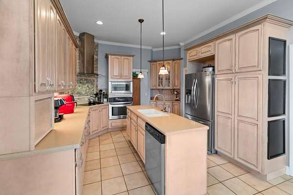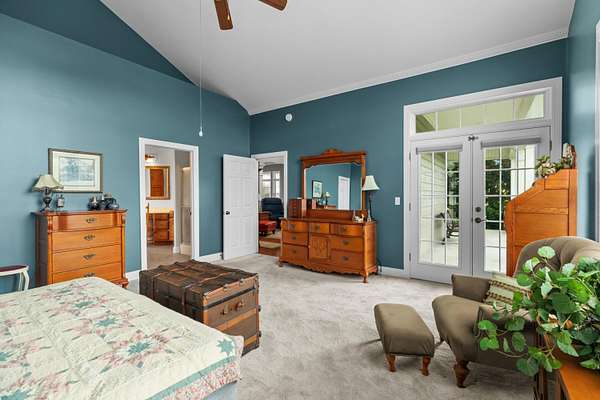 - Bookcases, Built-In Features, Cathedral Ceiling(s), Ceiling Fan(s), Crown Molding, Double Vanity, Eat-In Kitchen, Entrance Foyer, High Ceilings, High Speed Internet, Kitchen Island, Natural Woodwork, Pantry, Soaking Tub, Solid Surface Counters, Vaulted Ceiling(s), Walk-In Closet(s), Whirlpool Tub