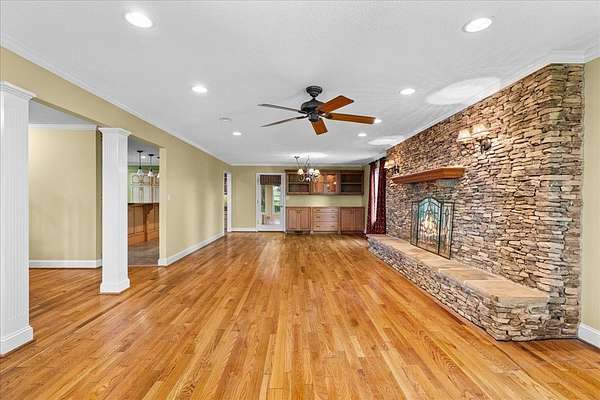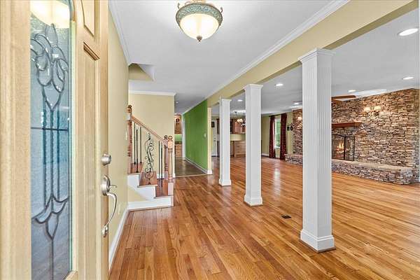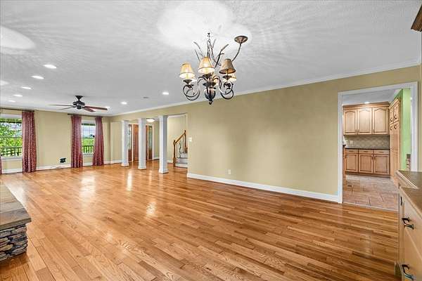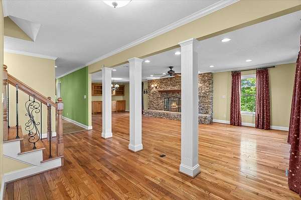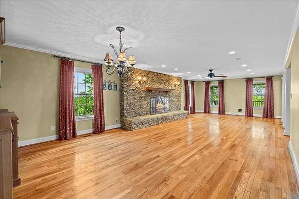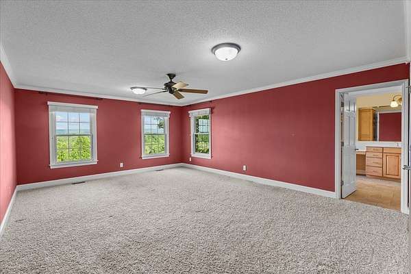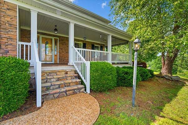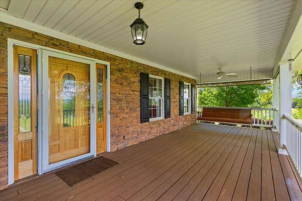 Welcome to this serene retreat on just over 5 acres with stunning mountain views. Inside, you'll find a spacious layout with a large main-level primary suite featuring a luxurious en suite bath with double vanity, garden tub, and separate shower. The kitchen opens to a generous living room anchored by a cozy stone fireplace--perfect for hosting or relaxed evenings at home. Just beyond, a bright sunroom offers beautiful views and direct access to the outdoor living space. Upstairs, two additional bedrooms provide flexibility for family, guests, or a home office. Enjoy peaceful mornings and quiet evenings on the expansive covered front porch, surrounded by natural beauty. As an added opportunity, additional acreage may be available for purchase, offered with a first right of refusal.