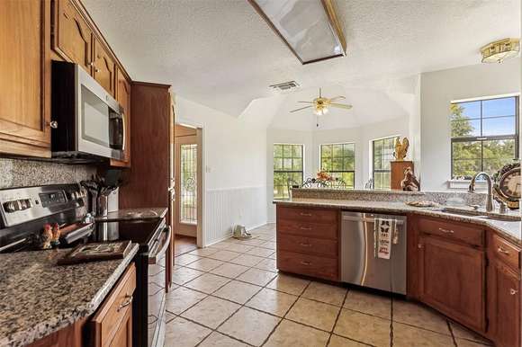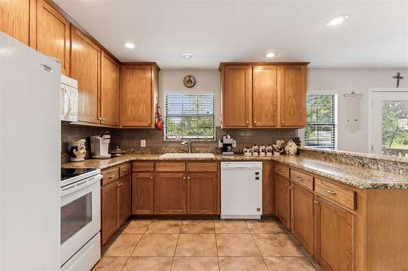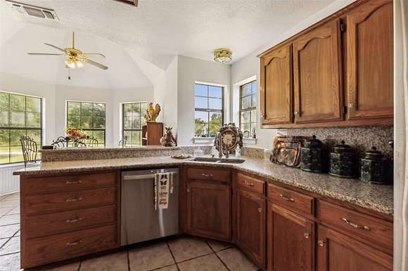 REDUCED! A GREAT PROPERTY AT A GREAT PRICE! Your secluded paradise is hidden at the end of a winding driveway! Behind a gated entrance is this perfect housing arrangement with a 4 bedroom, 3.5 bath home that includes a huge office or game room. Attached is a second residence that completes this perfect setup for a guest house or mother-in-law quarters. It features 2 bedrooms, 2 baths, and a deck on two sides. The homes are separated with a double garage, & there's also a detached double carport perfect for extended families & guests. The location next to Fossil Rim makes it ideal for an Airbnb or venue. The pool, outdoor kitchen, seasonal creek & fish pond keep everyone busy! The sandy loam terrain is level & perfect for horseback riding. The horses have their 5-stall barn with a large tack rm. There's an octagonal building originally designed for a hot tub but currently used for storage. A large shed off the stall barn would probably park 4 vehicles, and there's an older barn used for storage. Cross-fenced with scattered water faucets for animals or irrigation. Ag exemption. 9.89 acres. SO MUCH...see amenities list in attached docs.