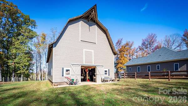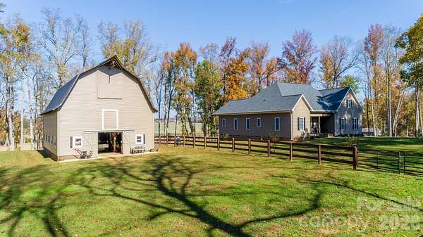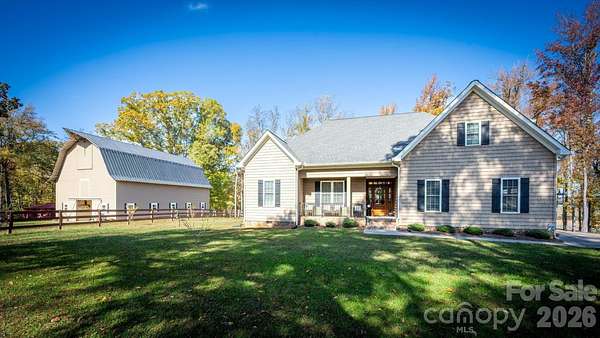 Gorgeous and immaculately maintained custom ranch with bonus room on 26+ acres in N. Iredell. Stunning setting for your own private estate with some open and some wooded areas, an old (but well maintained) 2-story barn with massive loft area, 3 stalls, a workshop space, plus a large equipment shed for your tractor and implements. Quality built home has covered porches front and back, hardwood floors on most of the main level, luxurious primary suite with double tray ceiling and his-and-hers closets, primary bath with soaking tub and separate custom tiled shower, dual vanities. Greatroom has soaring vaulted ceiling and is open to the kitchen with its custom cherry cabinetry, granite countertops, stainless appliances, breakfast bar and dining area. Large laundry room just off the kitchen area. Seller has improved the barn with vinyl siding for lower maintenance and upgraded the tack room (currently just used for storage) as well as adding lots of ornamental trees in the yard. Must see!
