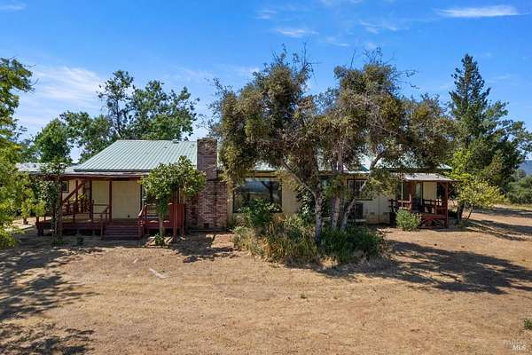 Bring this remarkable country estate back to its glory days. Privately elevated above the Big Valley of Kelseyville and just 4.3 miles from the charming downtown, this 35-acre agricultural property captures sweeping lake and vineyard views in every directionoffering space, privacy, and endless potential. Set on rolling acreage with panoramic vistas of Clear Lake, the estate features two residences, multiple agricultural buildings, and infrastructure ideal for farming, vineyards, equestrian use, or multigenerational living. The main residence offers 3 bedrooms and 3 baths, thoughtfully positioned to maximize the stunning scenery. Large windows frame lake and valley views, while the expansive living area features a fireplace and an inviting layout for gatherings. The kitchen maintains its original character with generous proportions fitting for a hillside ranch estate. The primary suite showcases vaulted open-beam ceilings, its own fireplace, and a peaceful ambiance perfect for quiet evenings. Step outside to a covered deck and patio designed for entertaining or relaxing while overlooking the valley below. The second residence includes 2 bedrooms and 1 bath, providing comfortable accommodations for guests, extended family, or potential rental income. Cozy and functional, it offers its own living space and kitchen, creating flexibility for a variety of living arrangements. Agricultural improvements enhance the property's versatility, including cold storage for produce preservation, a 960 sq. ft. garage workshop, a rustic timber-frame ag barn suitable for livestock or equipment, and a secondary ag barn for additional storage or workspace. Two residential wells plus a dedicated agricultural well provide ample water supply. A paved driveway leads to an electronic security gate, ensuring privacy and a grand sense of arrival. Zoned agricultural, this expansive ranch presents an exceptional opportunity to restore, reimagine, and create a legacy estate in one of Lake County's most desirable countryside settings. Rarely does a property of this scale, setting, and potential become available so close to townyet worlds away from it all.