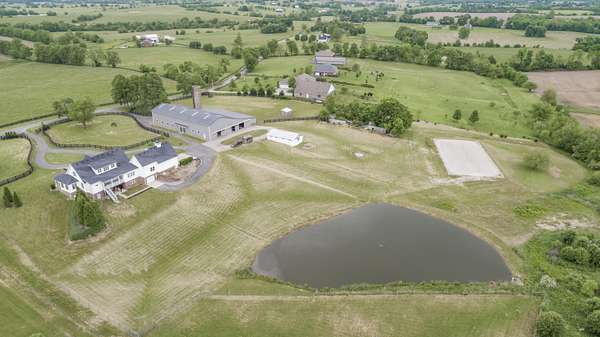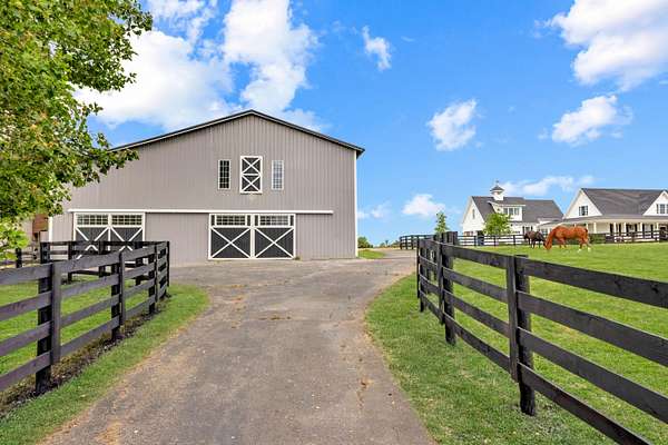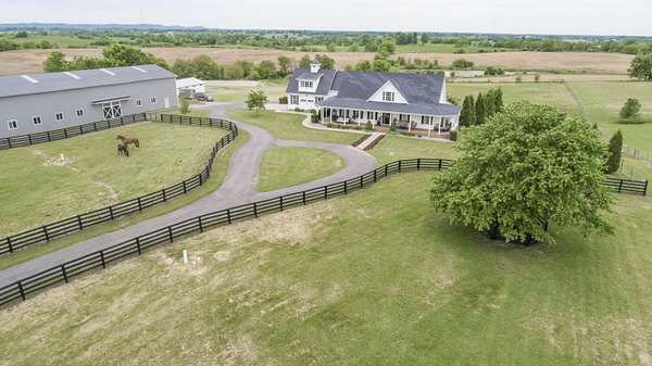 Nestled in a gorgeous, private setting -- just 15 minutes from Downtown Danville -- Kentucky, this exquisite custom home and 22-acre hobby farm blends quiet country living with modern opulence. A custom Amish-framed 5800 SF home, modeled after the 2012 "Southern Living" Idea House, is surrounded by 22 acres of scenic, blackboard fence-lined pasture, an aluminum multi-stall horse/hay barn (large enough for RV/boat storage), an outdoor riding arena, multiple paddocks, walking/riding trails, a detached 20' x 40' workshop, a lush garden/orchard, chicken coops, automatic waterers, a fully stocked pond, a circle drive, and a regal gated entrance. Not to mention, it offers excellent opportunities for multi-generational living and/or income potential! The breathtaking home on a finished walk-out basement is brimming with the best-of-the-best craftsmanship and modern farmhouse character -- offering a convenient mudroom/attached laundry, open concept kitchen/living/dining area (with custom floor-to-ceiling cabinetry, upgraded appliances, a cast iron farm sink, separate pantry, custom built-ins and gorgeous gas fireplace). Upstairs, three bedrooms boast their own full baths; and in the basement, a full kitchen, laundry, living area, storm shelter, roughed-in theater room, bedroom, full bath, office and 1-car utility garage make for another full house -- perfect for in-laws/guests or Airbnb! The first floor primary ensuite offers a private enclosed porch / fireplace; and the double-decker back porches facing west provide unforgettable sunset views that only the hilltops of Quirks Run Rd can offer! Throughout the residence, find airy 9-foot ceilings, wall-to-wall windows, rustic, real hardwood floors, gleaming modern finishes, and clean, classic design choices. Additional highlights include Geothermal heating and air, an HVAC humidifier, a water purification system, a roughed-in home theater room and an underground concrete storm shelter. This remarkable property seamlessly combines elegance, functionality, and peaceful charm of Kentucky farm living. Schedule your private tour today!