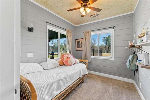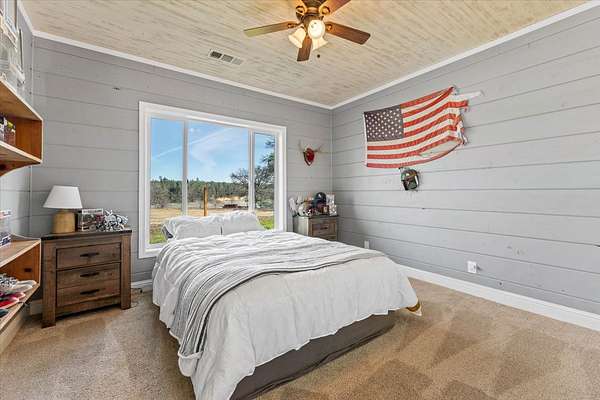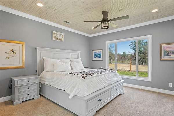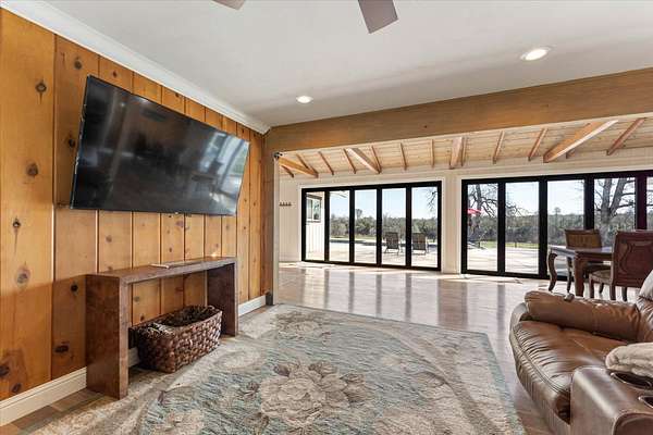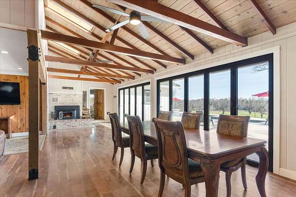 A pristine meadow, two creeks, a unique and warm home with a beautiful view, a guest suite plus detached guest quarters, an inground pool and spa, a shop, barns, cows, kids, and a fishing pole. This is a much sought-after lifestyle that dreams are made of. The ranch consists of 118 +/- acres, with the south fork of year-round Cottonwood Creek running along the east side and a seasonal creek crossing through the middle. The ranch is fenced and cross-fenced for livestock, now raising a small herd of cows. The single-story home offers 3,035+/- sf of living space with 5 bedrooms and 4 baths, including a guest suite. Living room, open great room with kitchen, dining, and lounge area. This incredible space also has amazing bi-fold windows opening to a large patio surrounding the inground pool and spa. The wall of windows folds into the side, letting the outside in and creating a spectacular entertainment area. The landscaping around the home is perfect for outdoor activities, as well as a fire pit and horseshoes. Used as a wedding venue on several occasions. Adding to the many amenities is a 2-car carport, shop, and guest quarters under one roof. Metal barn with 3 stalls, concrete floor, and open space. Second metal barn near the meadow. The creek is great for swimming or fishing. Let your imagination go.