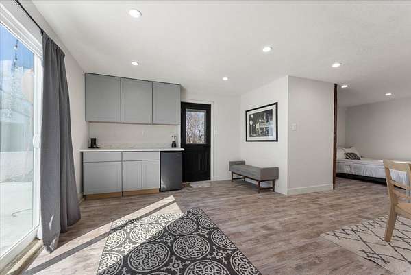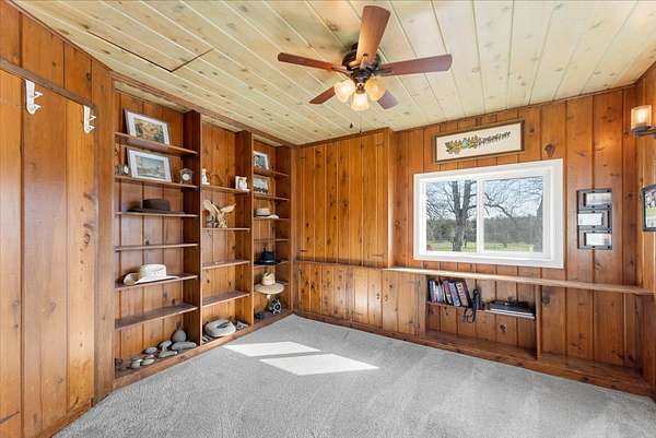 - OFFICE: This warm and cozy room is just off the main entry. It has built-in shelving, cabinets, and counter space. This room could also be a fifth bedroom.