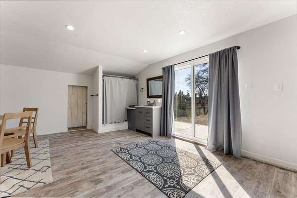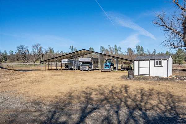 - SHOP, CARPORT, AND GUEST QUARTERS UNDER ONE ROOF: Wood-framed with a comp roof. Large storage space along the entire backside. Shop and storage room with concrete floors and finished walls. Two spaces under the carport section in the middle. Guest room at the end with kitchenette, partial bath, and slider to concrete patio.