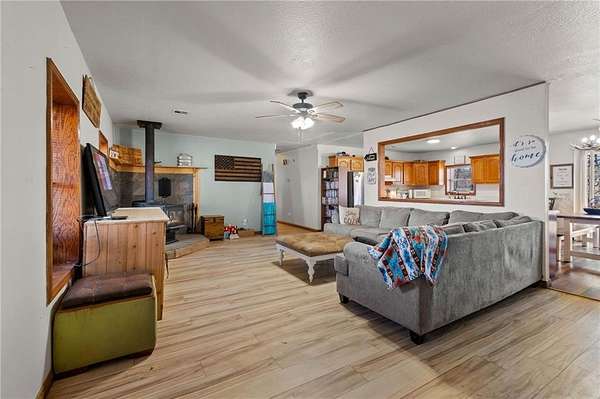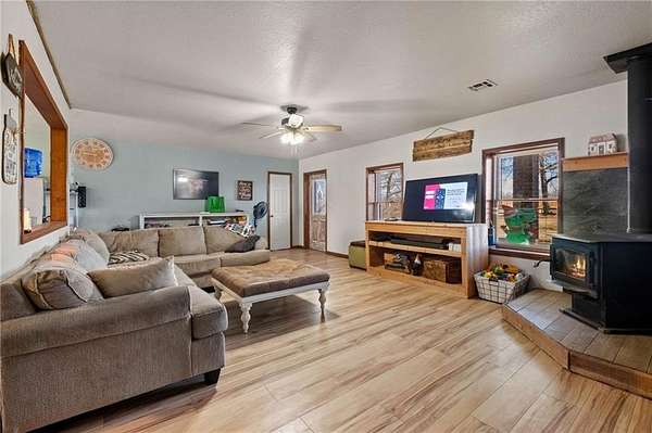 - Attic Storage, Ceiling Fans, Eat-in-Kitchen, Pantry, Smoke Detector, Walk-In Closets, Woodstove