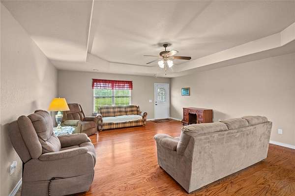 Private & scenic 7-acre Ozark retreat just minutes to Beaver Lake & Northwest Arkansas. Welcome to your own slice of the Ozarks. Situated on 7 acres of usable land, this property offers the rare combination of privacy, flexibility, and proximity to Northwest Arkansas growth. Inside, you'll find a wide-open living area with hardwood floors and tray ceilings, creating a space that feels both comfortable and expansive. The 2 bedroom 2 bath well kept home with 1,790 sq ft of living space, a true walk-in pantry, & functional kitchen areas let's you enjoy all your awake time comfortably. The layout flows naturally, with generously sized rooms and a spacious primary suite that offers comfort and flexibility. The 500 gallon propane tank is owned & supplies the water heater, furnace and wall heater along with the wood stove just off the kitchen. Enjoy wide-open skies, quiet surroundings, & room to build exactly what you want-shops, additional structures, or simply space to spread out. No neighbors on top of you.