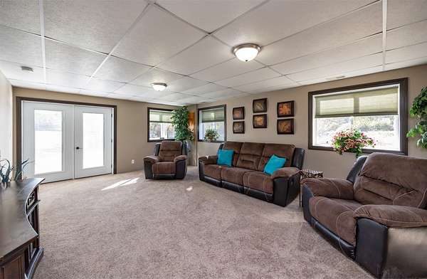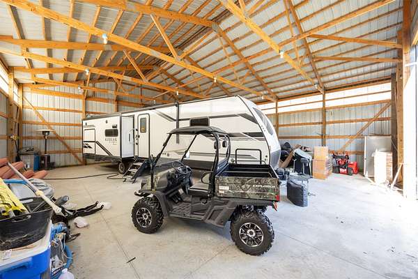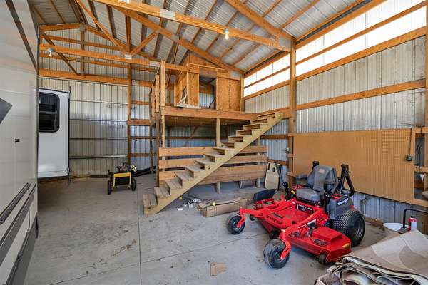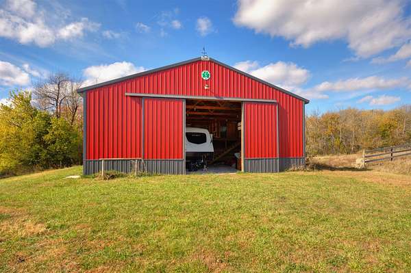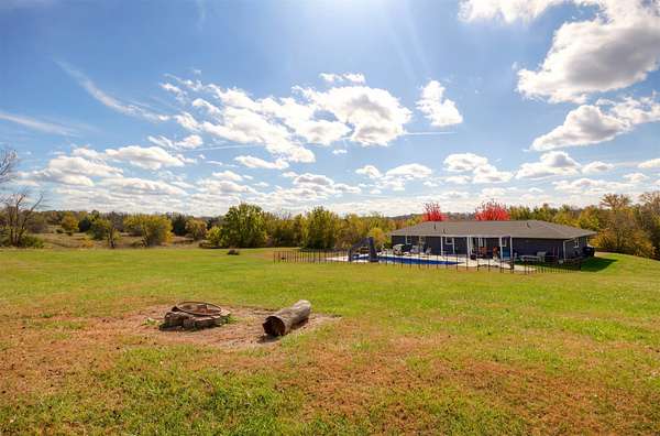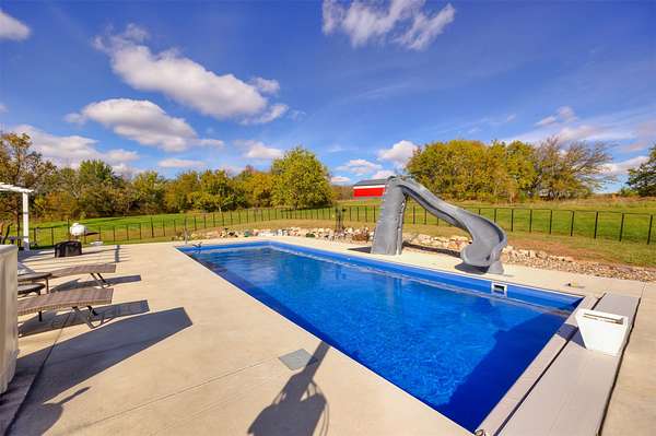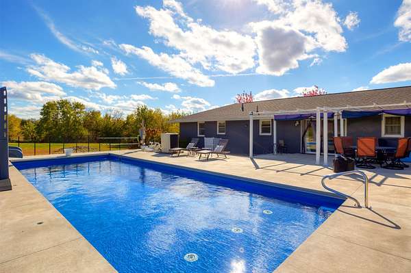 Here's a great opportunity to have your own daily getaway and still be within 30 minutes from the city. Set on nearly 7 acres of rolling grass, timber, and trails, this clean and move-in ready ranch home has much to offer. Over the years there have been some tasteful updates made to the flooring, kitchen and baths. The basement is finished and has a 2nd larger living room, 4th bedroom and full bath. In addition to all the peace and privacy you'll now enjoy, when you explore out back take notice of the big improvements made to this property, like the massive 1,890 sq ft Morton building complete with a concrete floor and full electric. Also in 2022 with a big 40-foot heated saltwater pool complete with a water slide, automatic cover, fountains, ambient lighting, and a surrounding concrete patio area. Additional land available for purchase, ask your agent for more details and schedule your private tour today.