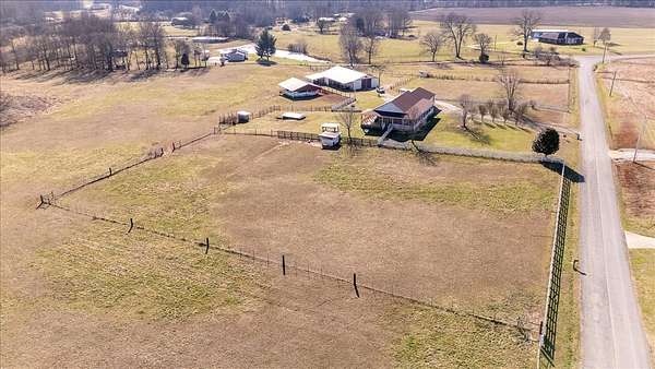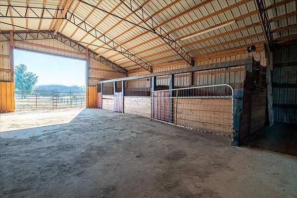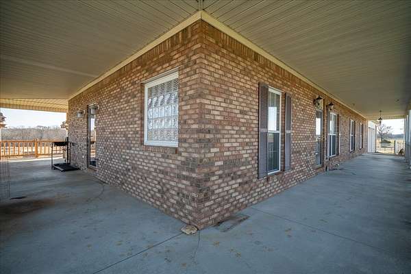 Stunning Brick Home on 24+ Acres - Equestrian Farm with Custom Barn. This remarkable brick home with a wraparound porch and beautiful acreage is the ideal property for anyone seeking a well-maintained farm. Inside, you'll find custom touches throughout, including a spacious kitchen with abundant cabinetry and countertop space, perfect for the home cook. The large living room with a cozy gas fireplace is perfect for entertaining or simply relaxing at the end of the day. Step outside and enjoy your morning coffee or evening sunsets on the covered wraparound porch, overlooking the gorgeous property. The land is fully fenced and cross-fenced, featuring a pond, a creek, and even a backup generator for peace of mind. Currently set up as an equestrian farm, the property is well-suited for horses or other livestock. The large custom barn includes 6 stalls, a tack room, water, and electric, while the covered round pen provides a safe and convenient space for training or working with animals. Take cover from the storms with a storm shelter (12x16 with electricity) installed on the property. Also staying with property is a 6 person hot tub (Hot Tub install Fall 2024), and relaxing gazebo. HVAC 17 years old, new roof install September 2025, propane tankless gas water heater approx 6 yrs old, house has termite bond with Cook's. Don't miss the chance to own this phenomenal property offering both a stunning custom home and 24+ acres of versatile farmland.