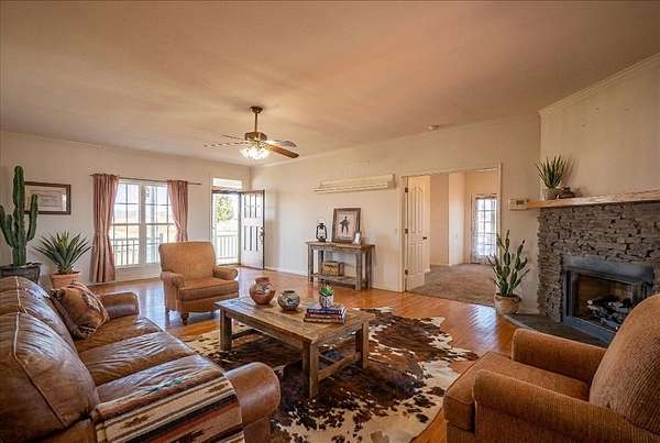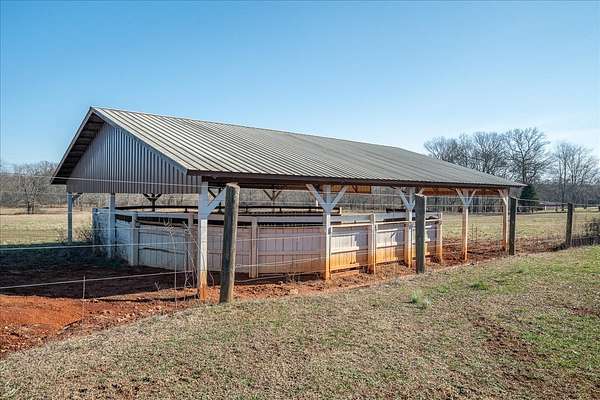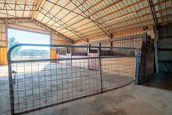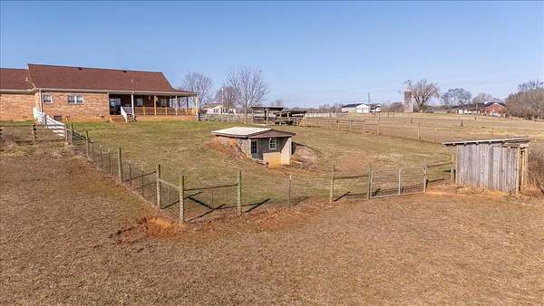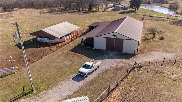 Stunning Brick Home on 24+ Acres – Equestrian Farm with Custom Barn. This remarkable brick home with a wraparound porch and beautiful acreage is the ideal property for anyone seeking a well-maintained farm. Inside, you’ll find custom touches throughout, including a spacious kitchen with abundant cabinetry and countertop space, perfect for the home cook. The large living room with a cozy gas fireplace is perfect for entertaining or simply relaxing at the end of the day. Step outside and enjoy your morning coffee or evening sunsets on the covered wraparound porch, overlooking the gorgeous property. The land is fully fenced and cross-fenced, featuring a pond, a creek, and even a backup generator for peace of mind. Currently set up as an equestrian farm, the property is well-suited for horses or other livestock. The large custom barn includes 6 stalls, a tack room, water, and electric, while the covered round pen provides a safe and convenient space for training or working with animals. Take cover from the storms with a storm shelter (12x16 with electricity) installed on the property. Also staying with property is a 6 person hot tub (Hot Tub install Fall 2024), and relaxing gazebo. HVAC 17 years old, new roof install September 2025, propane tankless gas water heater approx 6 yrs old, house has termite bond with Cook's. Don’t miss the chance to own this phenomenal property offering both a stunning custom home and 24+ acres of versatile farmland.