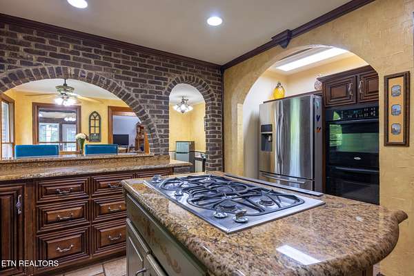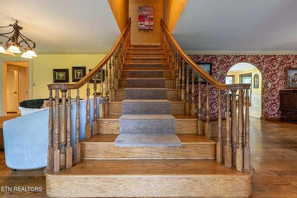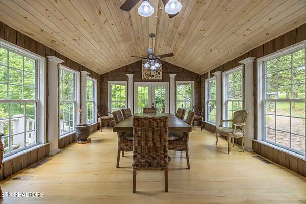 Welcome to exceptional country living in this beautifully crafted brick home, set on 3.18 acres of rolling landscapes! As you approach along this peaceful road, the impressive curb appeal immediately captivates. Step inside to a grand entrance featuring a wide staircase, a formal living room, and an expansive dining room. Flowing seamlessly beyond is a spacious family room boasting high tongue-and-groove ceilings, which opens to a bright sunroom bathed in natural light. From the sunroom, access a covered porch-ideal for savoring your morning coffee while enjoying the views. Conveniently attached off the family room is a two-car garage. The gourmet kitchen, remodeled within the last seven years, shines with granite countertops, a double oven, and exquisite cabinetry. On the main level, the primary bedroom impresses with a double tray ceiling, custom fireplace, and an en-suite bathroom complete with a luxurious Jacuzzi tub. Also on this floor: a dedicated office and laundry room for everyday ease. Ascend to the upper level, where you'll find two generous bedrooms, a versatile bonus room, and a large full bathroom. The basement has undergone a complete gut renovation, transforming it into a self-contained haven with a brand-new kitchen equipped with modern appliances. Beyond the kitchen lies a dining area that opens to a cozy living room, plus a full bathroom with a step-in shower, a bedroom featuring a walk-in closet, and two additional bonus rooms-one of which could effortlessly serve as another bedroom. With its own driveway and private entry, this space is perfect as a mother-in-law suite or income-generating rental. Outdoors, unwind on the deck at the basement's private entrance, the home's lower deck, the screened porch, or around the inviting fire pit-all while taking in breathtaking views of rolling slopes, lush gardens, and surrounding woods. The property is further enhanced by two sheds, a charming playhouse, and a detached workshop. Experience the best of rural tranquility, all while being just under 10 minutes from vibrant Downtown Athens, with its array of restaurants and shopping.