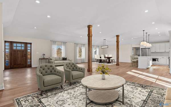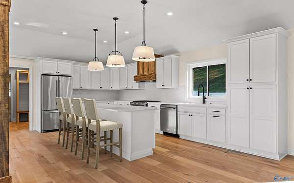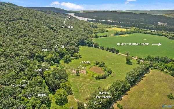 Newly renovated 1-LEVEL home on 32+- ACRES - within 35 minutes of downtown Chattanooga! This UNRESTRICTED property has it all: UPDATED home, SPRING-FED POND, pastures, woodlands, barn, gated entrance. Appreciate the property's natural beauty, punctuated by wrought iron fencing and serene woodlands, all within a stone's throw of the TN RIVER. The large front porch, MOUNTAIN VIEWS, private back patio.OPEN FLOOR PLAN, thoughtful design, and elegant finishes throughout the 4 bedrooms and 3 bathrooms. Additional structures include a second home and BARN for outdoor equipment storage. Conveniently located less than 25 minutes to Bryant, Bridgeport, Jasper, and South Pittsburg.
