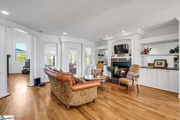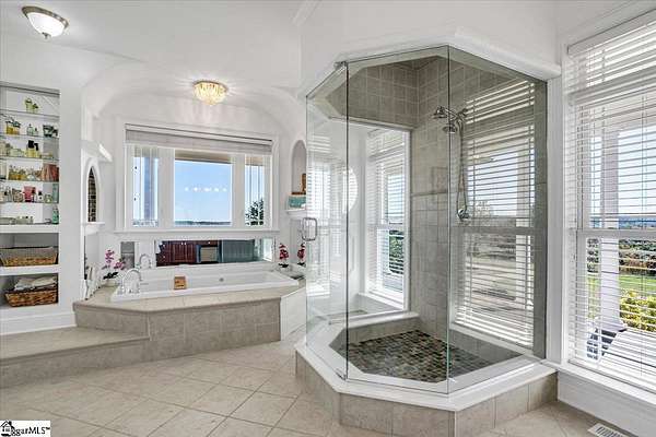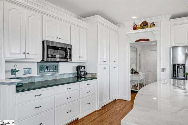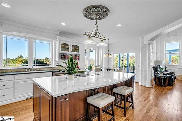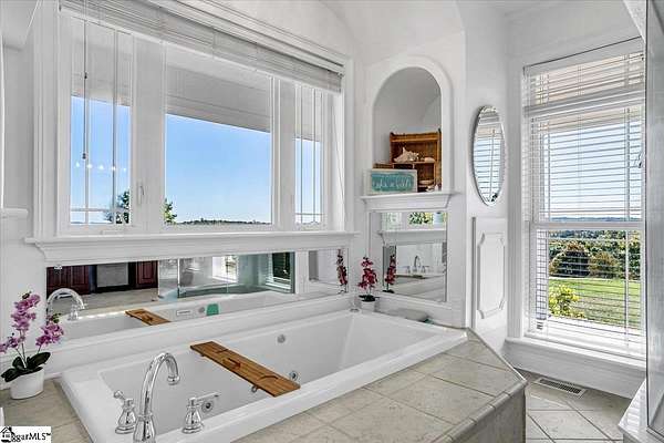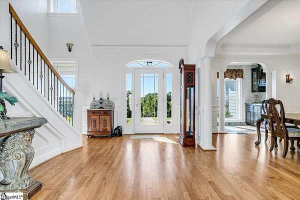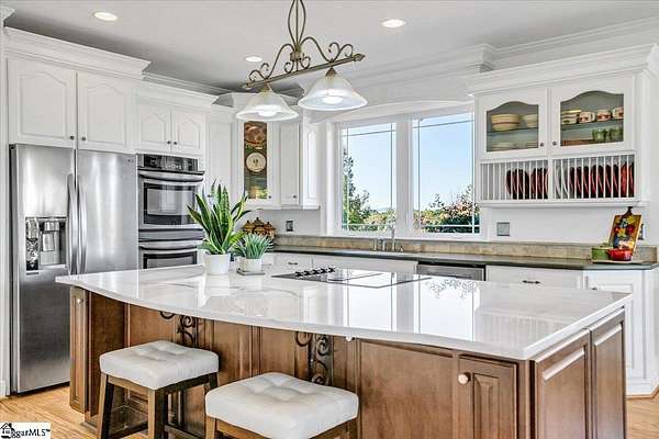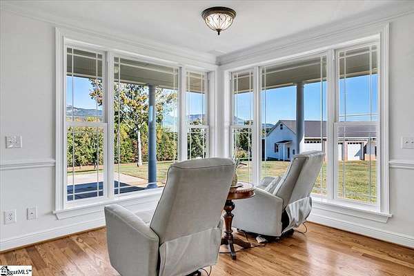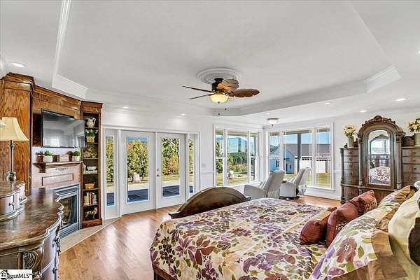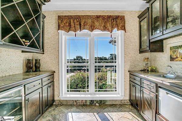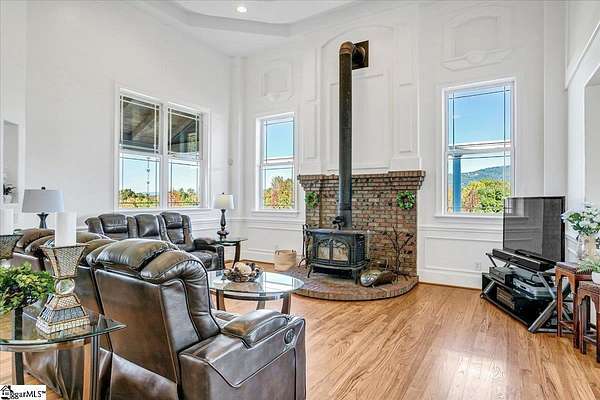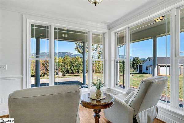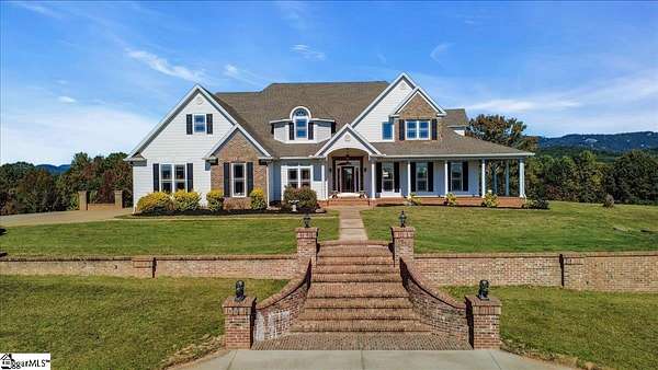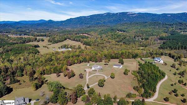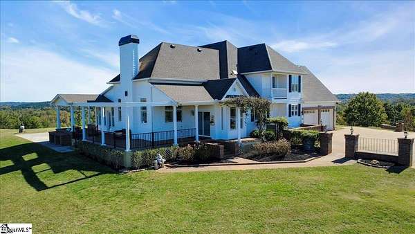 Welcome to 158 Glassy Road - A Rare Mountain View Estate in Landrum, South Carolina With over 15 years in the real estate industry, few properties have left such a lasting impression as this remarkable private estate nestled in the foothills of the Blue Ridge Mountains. Located in the scenic town of Landrum, SC, this gated 16-acre property delivers some of the most breathtaking and peaceful mountain views you'll ever experience -- visible from nearly every room in the home, including the laundry room. As you enter the residence from the expansive 95-foot wraparound porch, you're immediately greeted by beautifully refinished hardwood floors and an elegant curved staircase, with a second staircase located near the kitchen and great room for added functionality. The attention to craftsmanship is evident throughout the home, from the rich wood textures to the thoughtfully designed living spaces. The heart of the home is a spacious custom kitchen featuring a striking quartz-topped center island, wall ovens, and a downdraft cooktop. It flows seamlessly into a light-filled breakfast nook and an adjacent casual dining space under a vaulted, timber-framed ceiling -- ideal for relaxed meals with stunning mountain backdrops. Nearby, the two-story great room showcases a real wood-burning stove with a brick hearth, providing both rustic charm and practical use during winter months or power outages. Entertain guests in the formal dining room or gather around the Tuscan-inspired wet bar, complete with wine storage, a beverage refrigerator, and a convenient drawer-style dishwasher. Every element has been designed to blend comfort with sophistication. The main-level primary suite spans the depth of the home and includes a cozy sitting area with panoramic views, a fireplace, and direct access to the porch -- a peaceful retreat after a long day. Upstairs, you'll find a private guest suite featuring a kitchenette, dining area, and ensuite bath -- ideal for multi-generational living or long-term guests. In total, the home includes five bedrooms. One is currently used as a home gym, another features a charming playhouse loft, and yet another has direct access to a hobby room. A loft-style office sits at the top of the secondary staircase, while one of the upstairs bedrooms enjoys its own private covered balcony overlooking the grounds. Additional highlights include: A spacious sunroom filled with natural light An outdoor kitchen (15'x12') with built-in grill and sink A custom firepit with adjacent brick firewood cribs A massive 60'x48' detached garage with electricity and a large workshop area A 40'x15.6' RV garage with a 12' tall RV entry access A peaceful barn area perfect for keeping goats or creating your dream hobby farm This extraordinary estate blends refined living with natural beauty, offering peace, privacy, and the kind of scenic grandeur rarely found. Whether you're sipping coffee on the porch, enjoying the fall foliage, or stargazing by the fire, life at 158 Glassy Road is nothing short of exceptional.