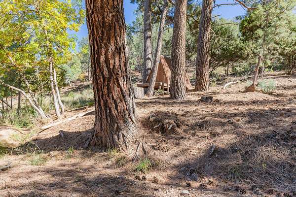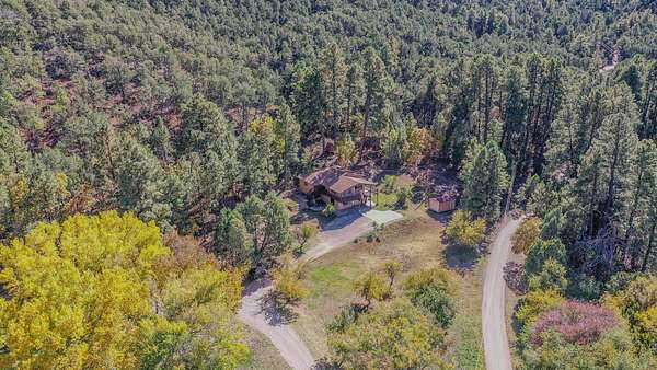 From Cloudcroft: Travel 7 miles and when you see the Apple Barn on the right, take a left on Haynes Canyon Rd. Stay on Haynes Canyon for about one and one half miles. The driveway for 156 and 158 is on the right. When the driveway splits, stay to the right.
